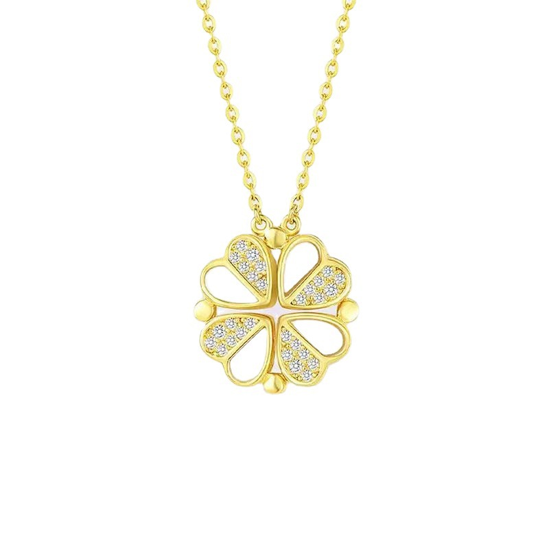 S925 Sterling Silver 2-in-1 Magnetic Convertible Clover to Hearts Pendant Necklace(gold)