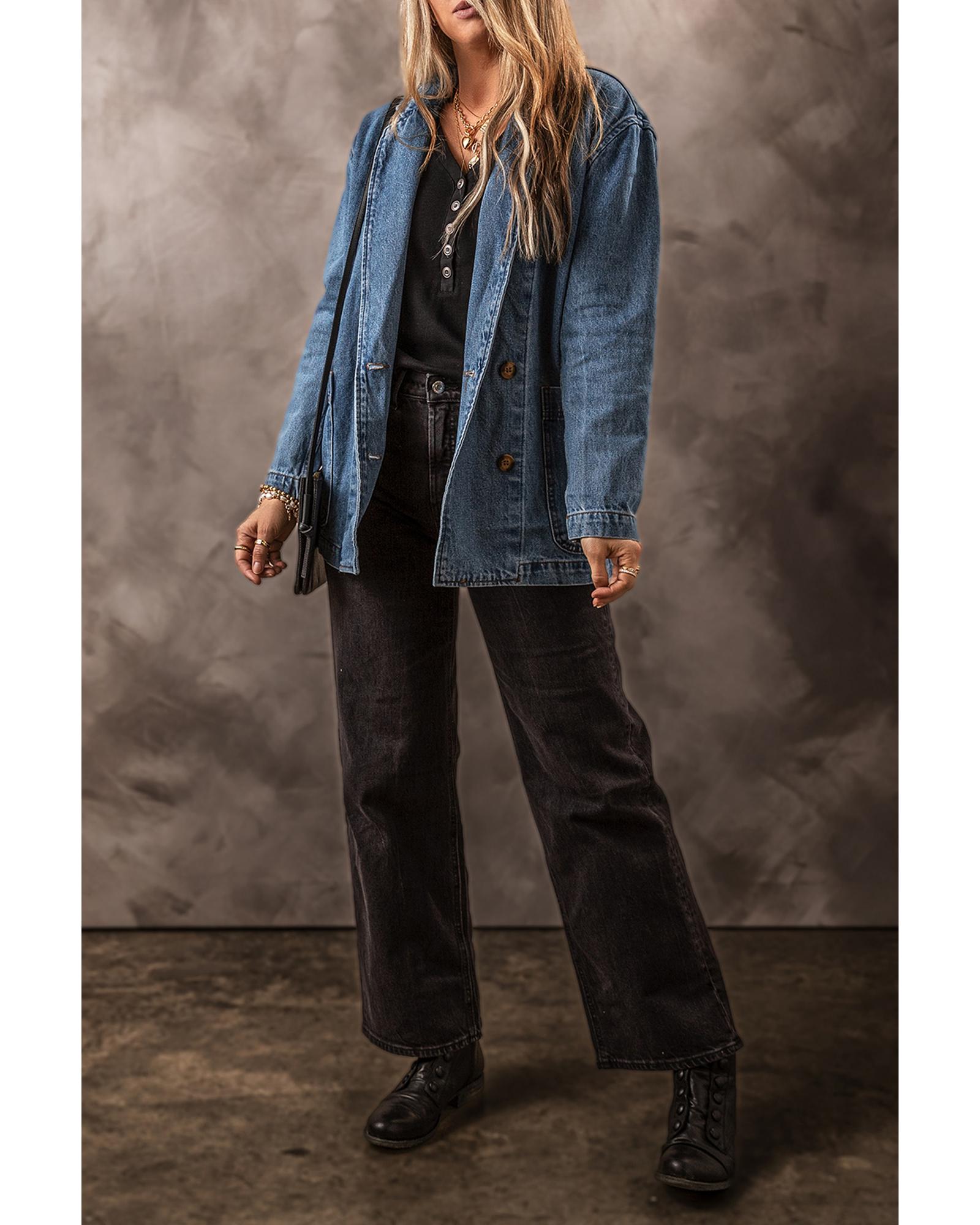 Sail Blue Side Pockets Lapel Collar Denim Jacket – M