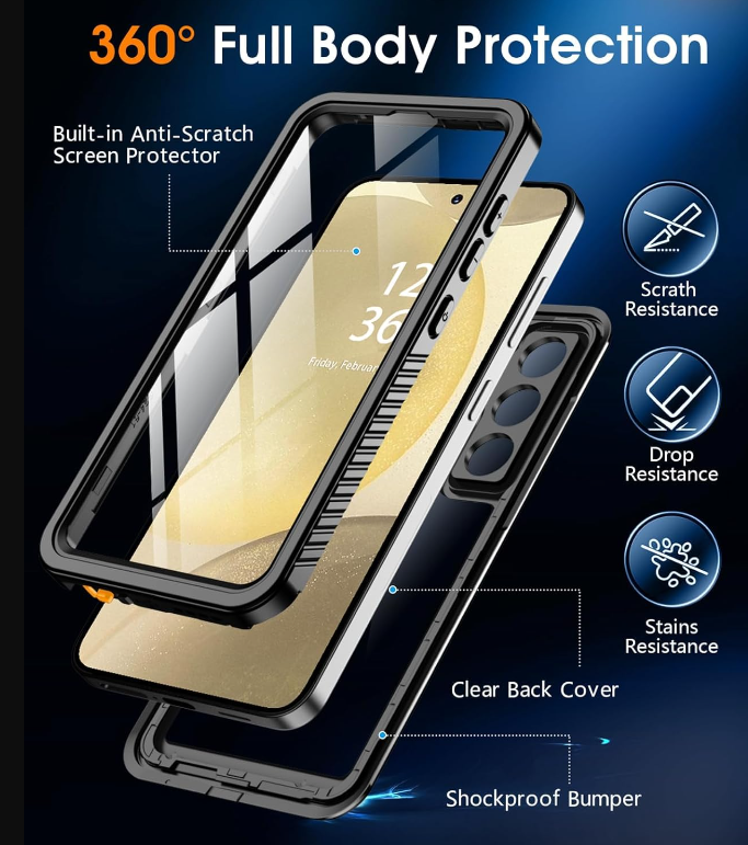 - IP68 Waterproof: The Galaxy S24 Plus Case Waterproof offers superior protection against water and dust, making it perfect for a range of outdoor activities and daily use.We suggest doing waterproof test to the case, before taking it into water with a phone in it.