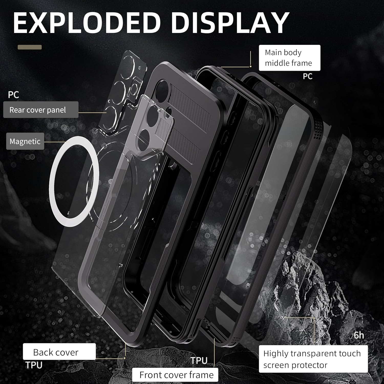 • 【HD Build-in Screen & Camera Protector】Designed for S25 Plus waterproof case specially with built in screen protector. 0.33mm sreen protector maintains 99.99% response sensitivity and never scratches. Specially designed black camera lens protector offers enough protection while brings every photo pristine beauty. All raised bezels effectively protect your screen and camera lens from any drops & scratches