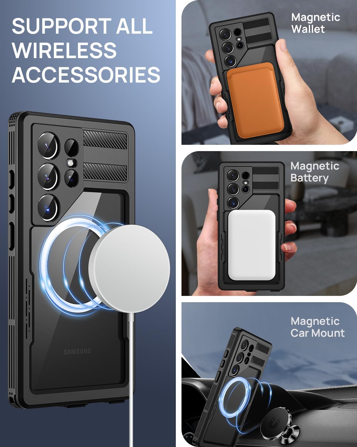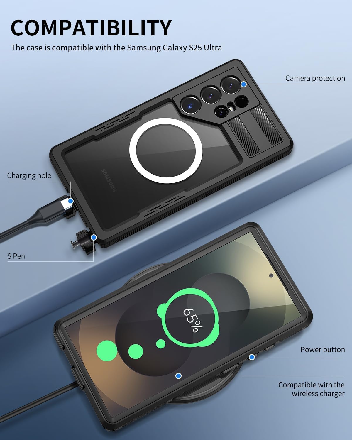 - ? [IP68 Waterproof] This Samsung Galaxy S25 Ultra Case is IP68 Waterproof Certified, submerged to 10ft/3 m for 1 hour,and is protected from dust,dirt,water,snow and rain. The whole body protection design allows you to take photos/videos underwater. In addition, the washable design ensures its easy cleaning and keeps your phone and case always look like new, protect your phone from scratches and fading