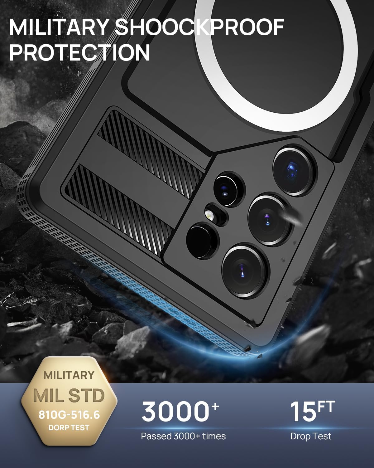 - ? [360 Full Body Protection] New Shockproof Designed for S25 Ultra Case is certified to exceed Military Grade Drop Test standards and survive drops up to (3.6m). Unique double layer shock-absorbing design, 4 anti-collision corners effectively absorb and disperse 99% of the impact force. Besides, the phone case is fully sealed to wrap your phone at 360 degrees without dead ends, comprehensive protection. No need to worry about scratches, drops, bumps, stains, or any other daily damages