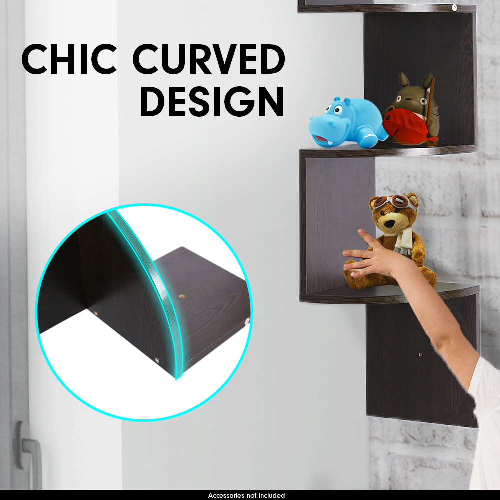 Sarantino 5 Tier Corner Wall Shelf Display Shelves Dvd Book Storage Rack Floating Mounted – Dark Brown
