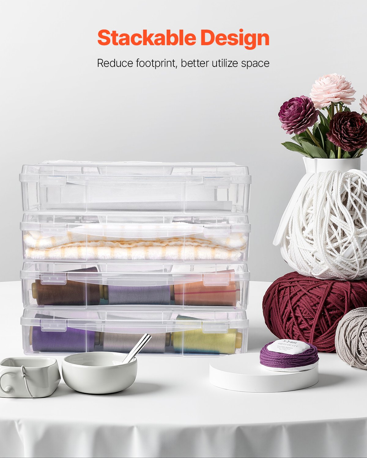 Scrapbook Paper Storage 4 Pack Stackable Plastic Board Game Boxes Clear Case