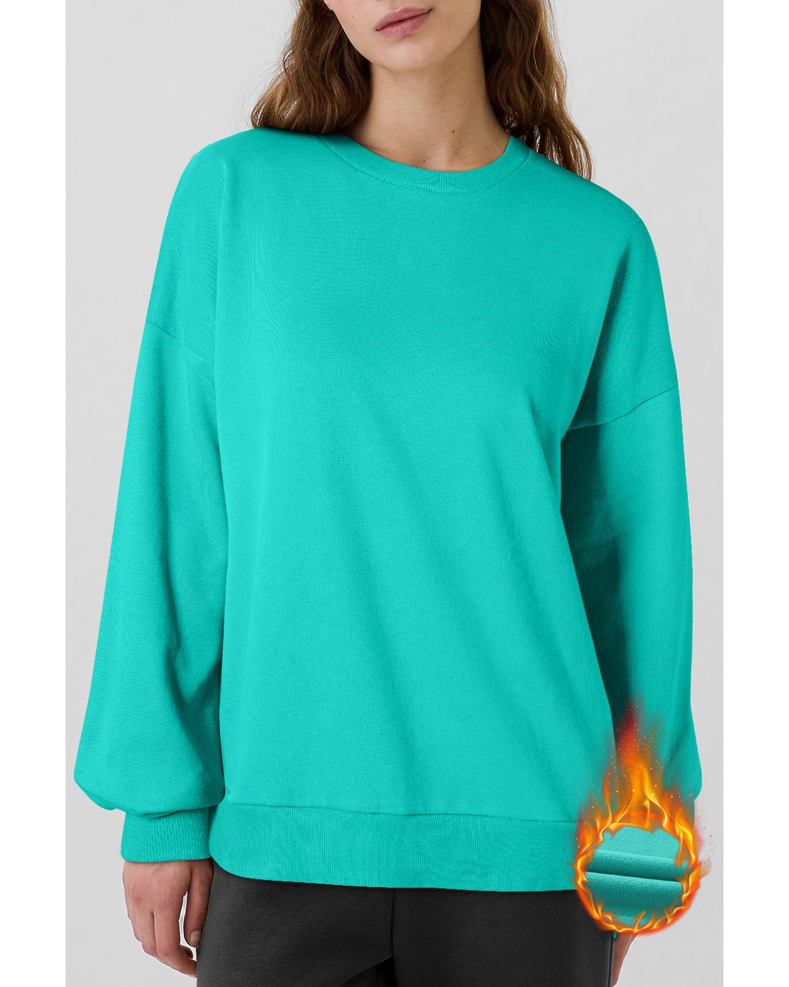 Sea Green Solid Fleece Lined Drop Shoulder High Low Sweatshirt – L