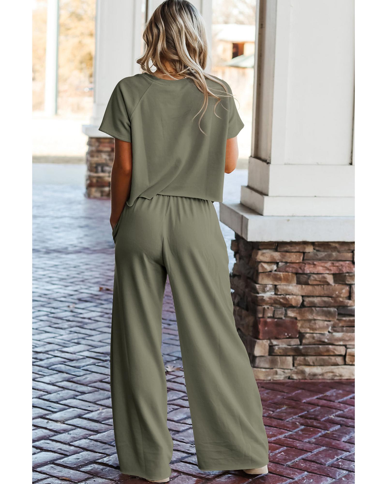 Seagrass Raw Hem Loose Tee and Wide Leg Pants Set – S