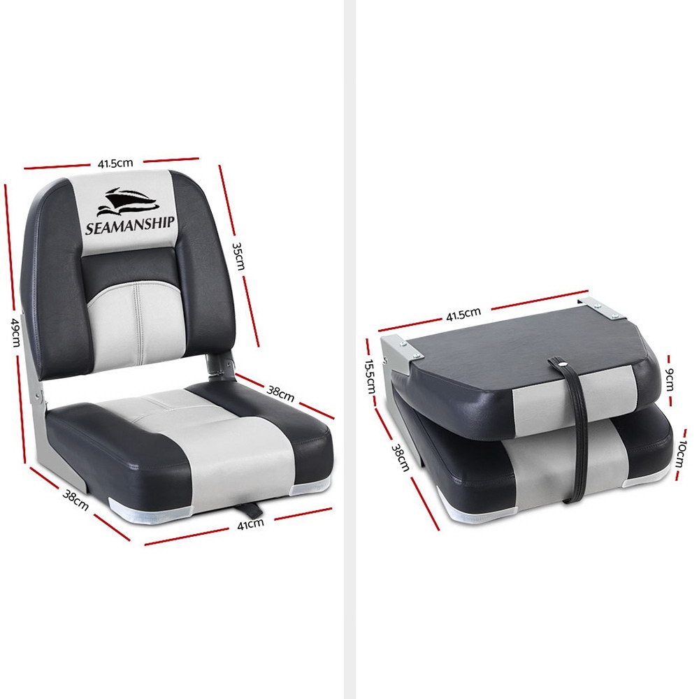 Seamanship 2X Folding Boat Seats Marine Seat Swivel Low Back 10cm Padding Grey
