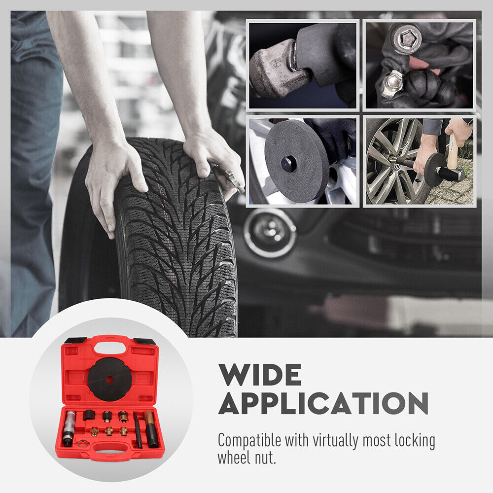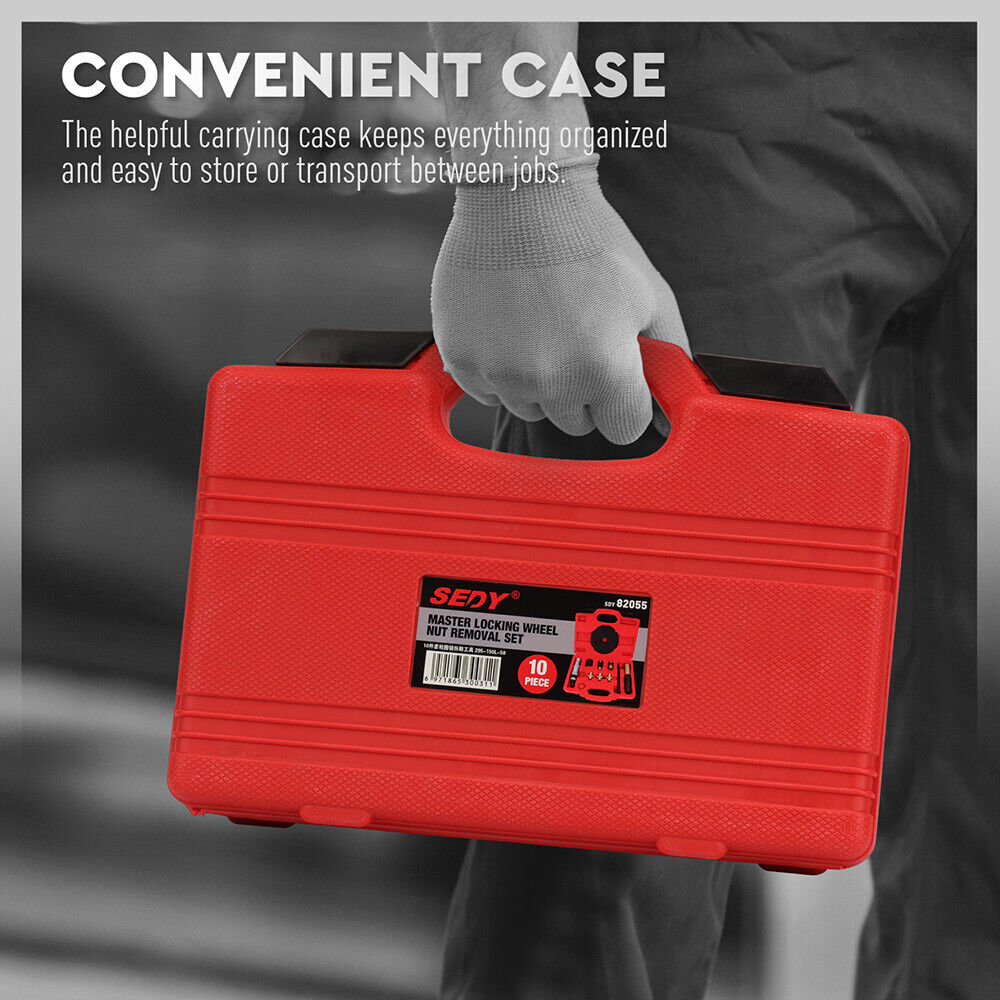 SEDY 10Pc Wheel Lock Removal Tool Kit Wheel Locking Nut Key Remover Kit With Box