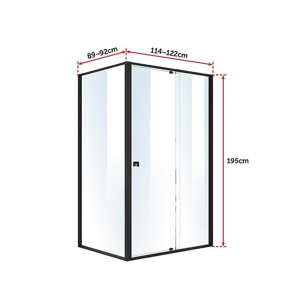Semi Frameless Shower Screen (114~122)x 195cm & (89~92)x 195cm Side AS/NZS Glass