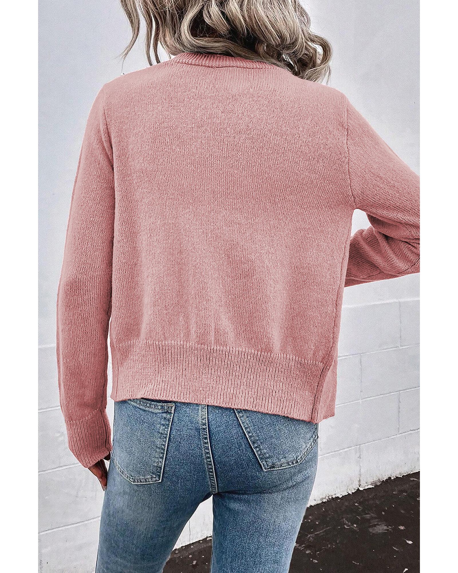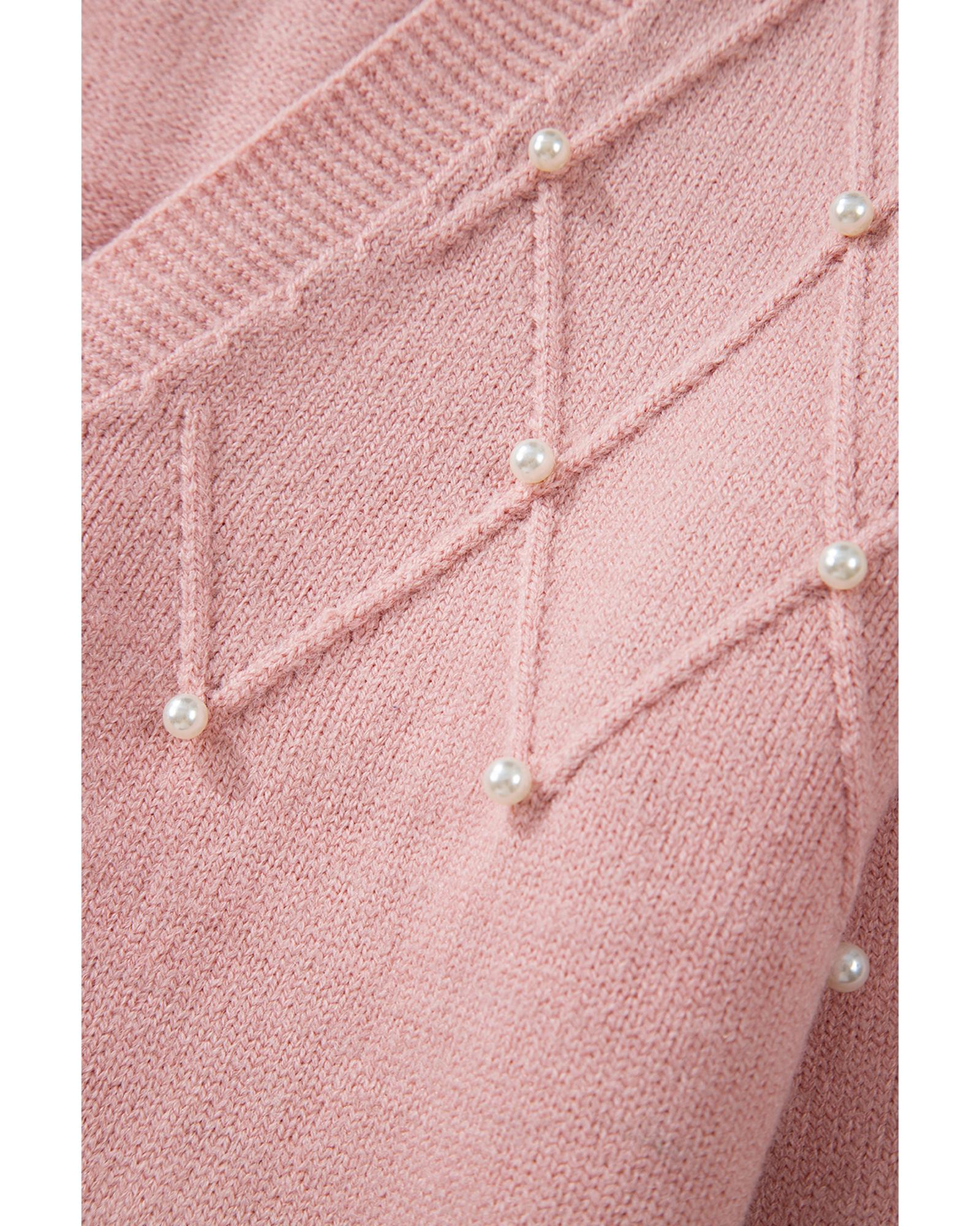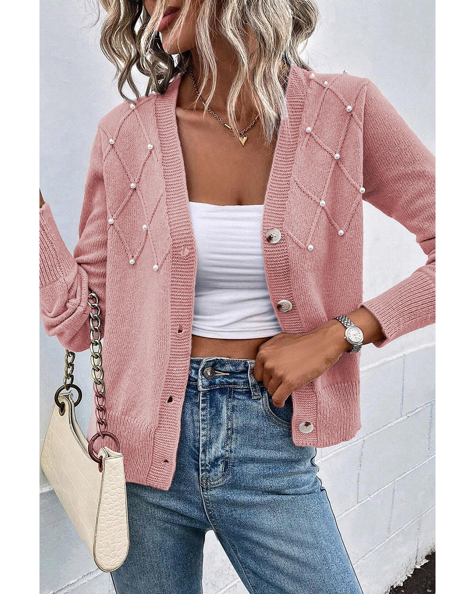 • Sepia Rose Textured Knit Pearl Beaded Button Up Cardigan