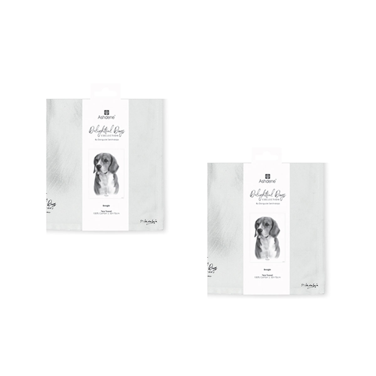 Set of 2 Delightful Dogs Cotton Kitchen Tea Towels 50 x 70 cm Beagle