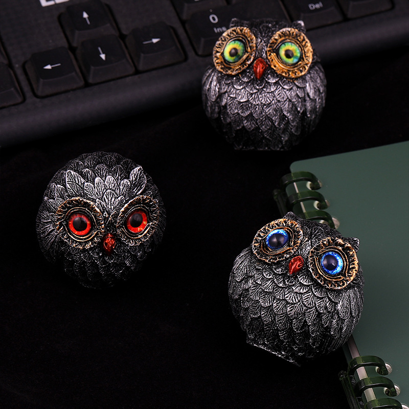 - Striking Appearance: The metallic grey finish combined with the vibrant blue and gold eyes makes this owl stand out.