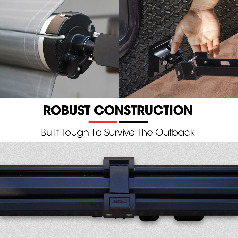 Easy to operate, the manual control system allows you to extend and retract the awning with a simple pull of the strap, no electricity needed. The aluminium roller, fabric lock rail, support arms, and brackets, along with stainless steel nuts and bolts, add to the awning’s superior strength.