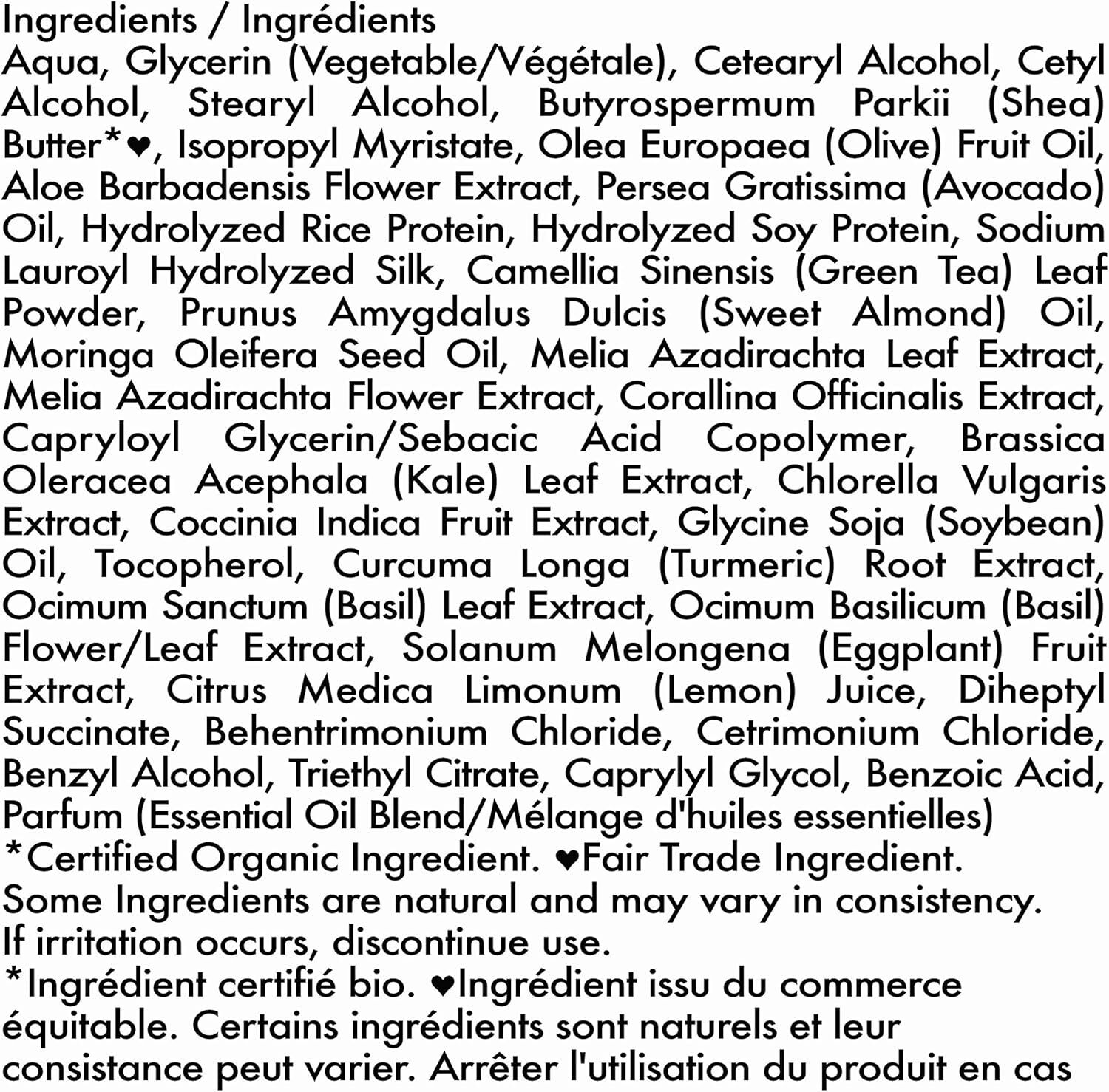 • Moringa – Strengthens and coats weak hair strands for a thicker, fuller appearance. Avocado – Loaded with potassium and amino acids to keep hair moisturised, shiny and supple.