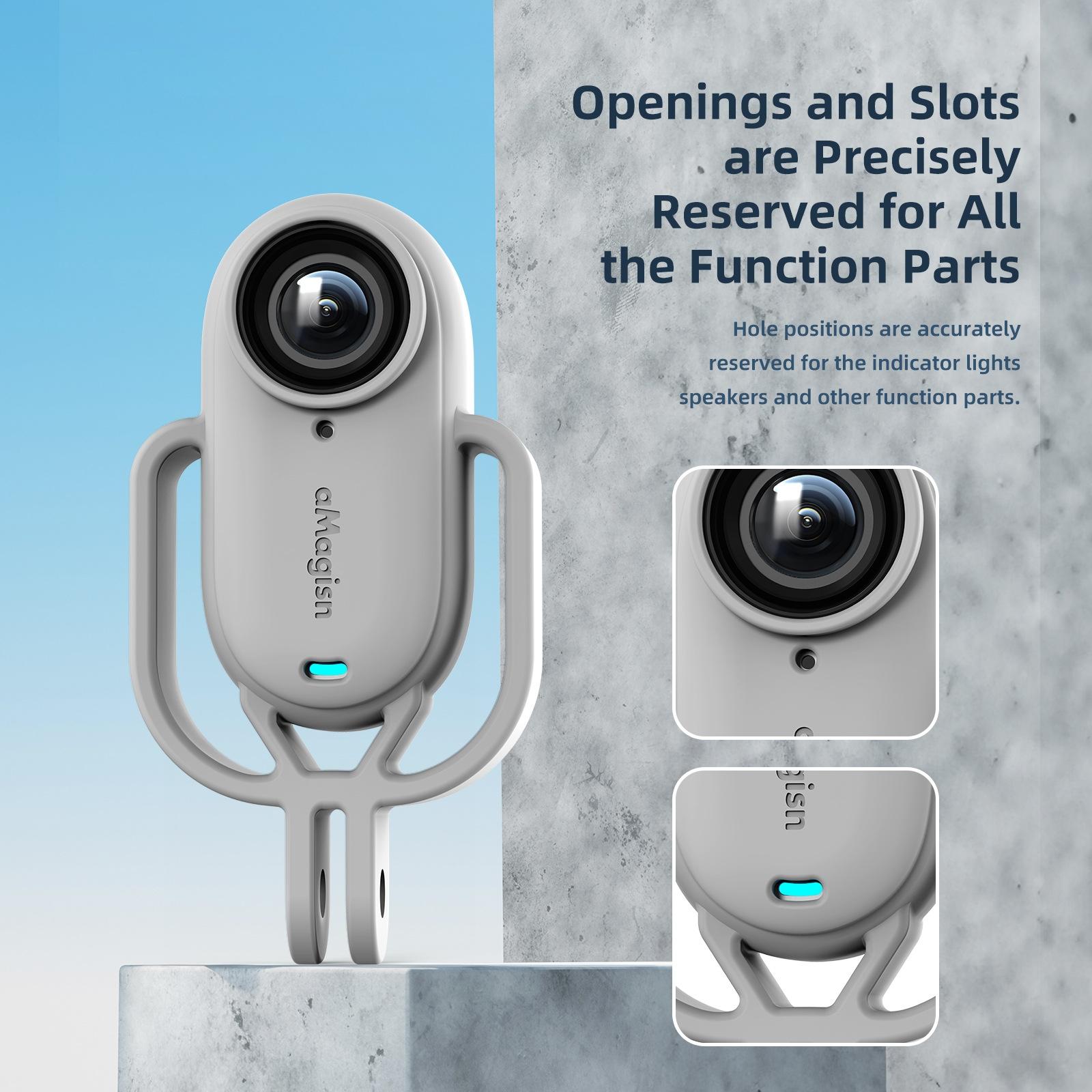 Shock-absorbing Silicone Cover for Insta360 Go 3s Camera – Black – Horizontal Gray