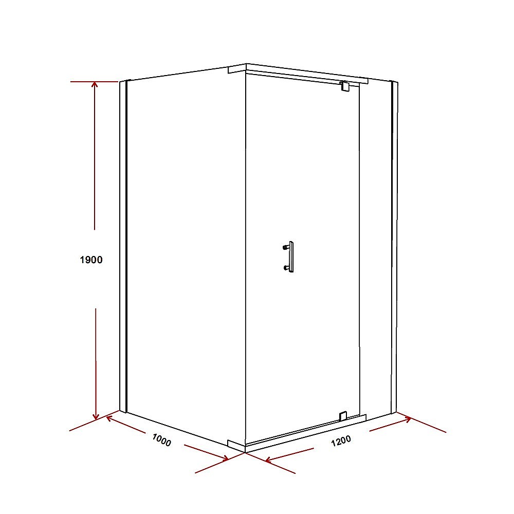 Dimensions: 1200 x 1000 x 1900mm shower screen