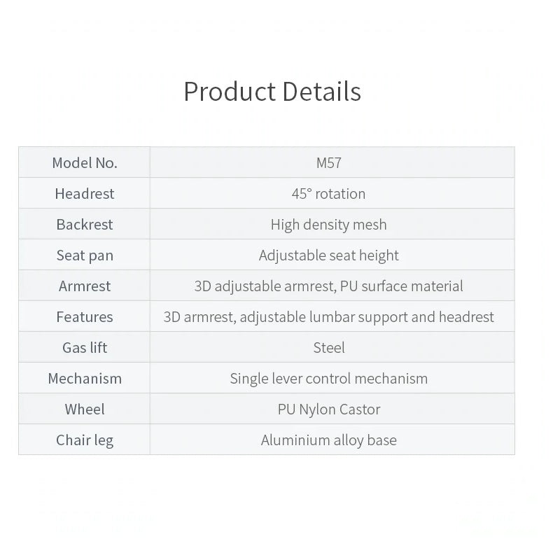 Seat/Back Material: Mesh