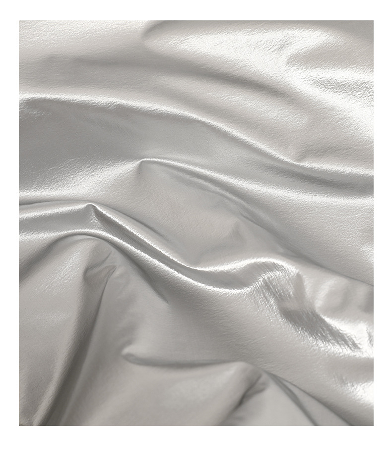 Elevate your accessory game with this stunning Luminous Silver Nylon Bag, a perfect blend of modern aesthetics and practical design for Summer 2024. Crafted from a durable and lightweight Nylon and Polyester blend, this bag features a captivating metallic sheen that catches the light beautifully.