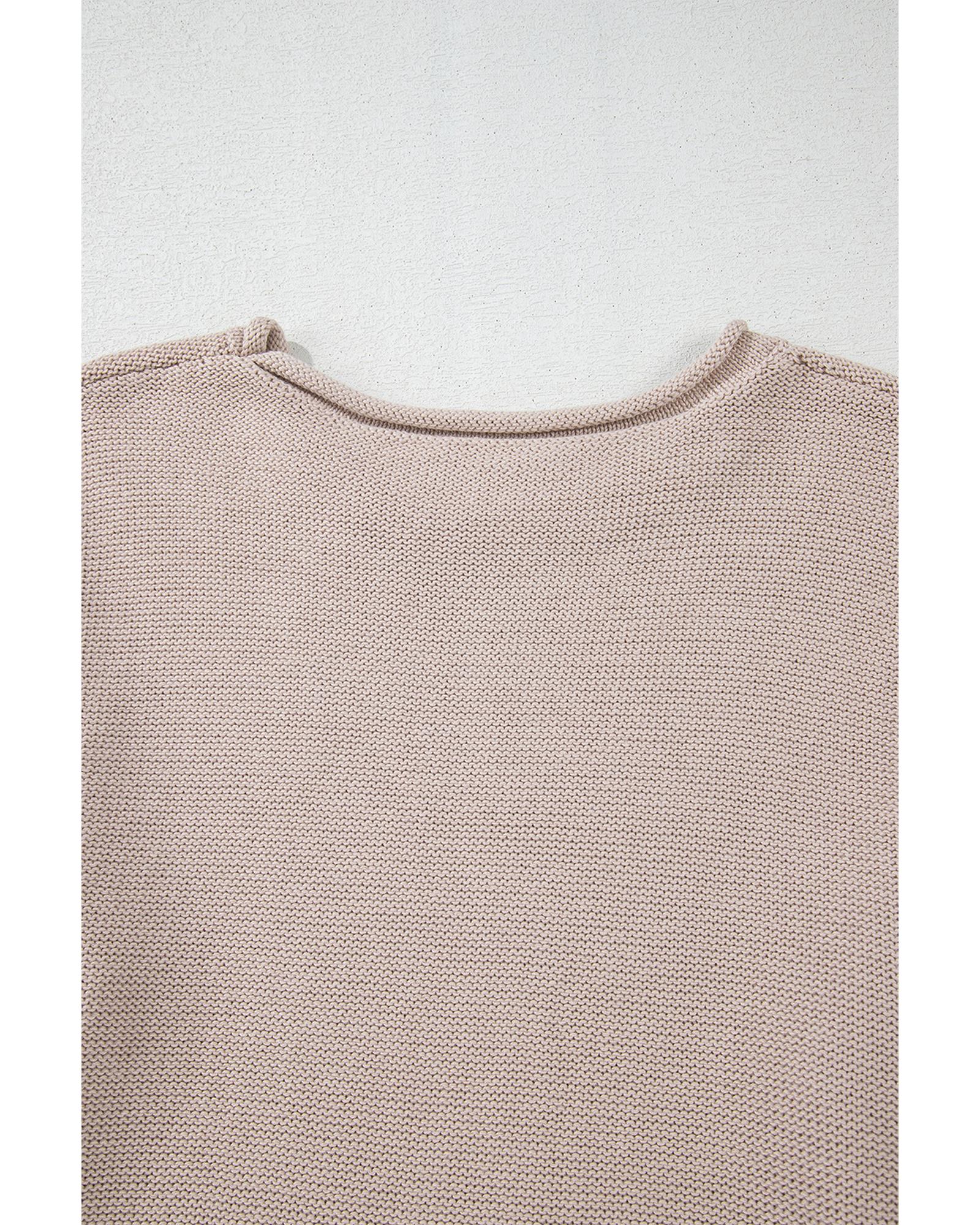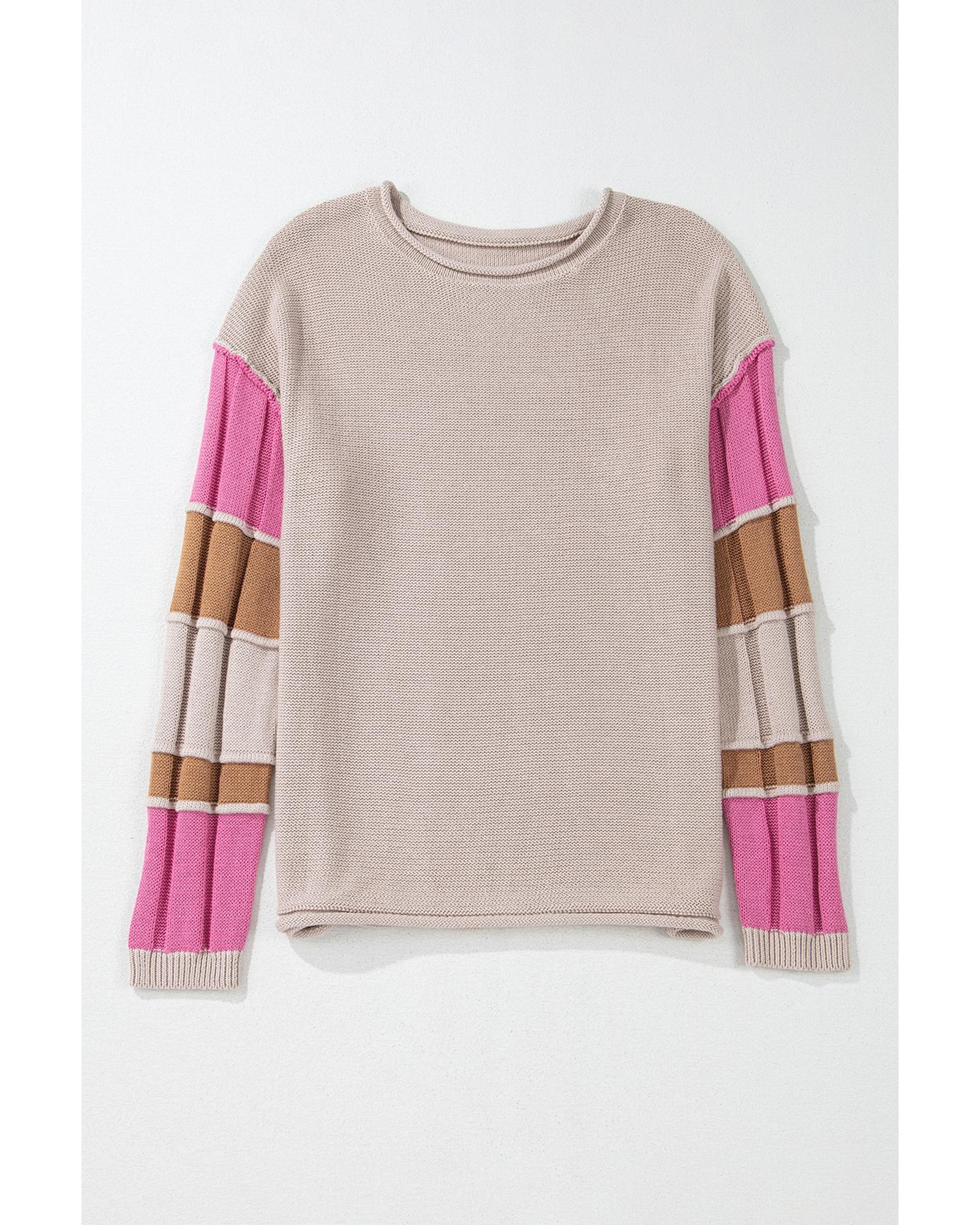 Simply Taupe Colorblock Exposed Seam Round Neck Sweater – L