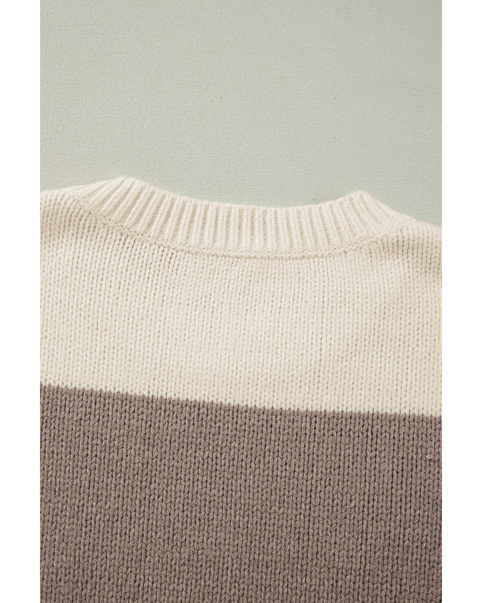 Simply Taupe Colorblock Loose Pullover Sweater – XL