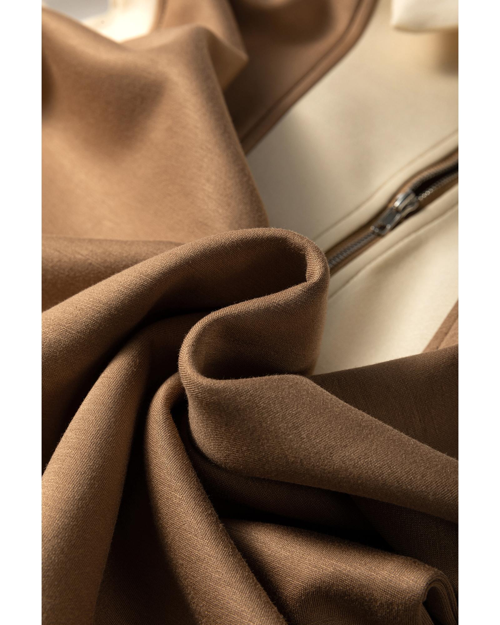 Simply Taupe Half Zipper Collared Colorblock Short Sleeve Top – L