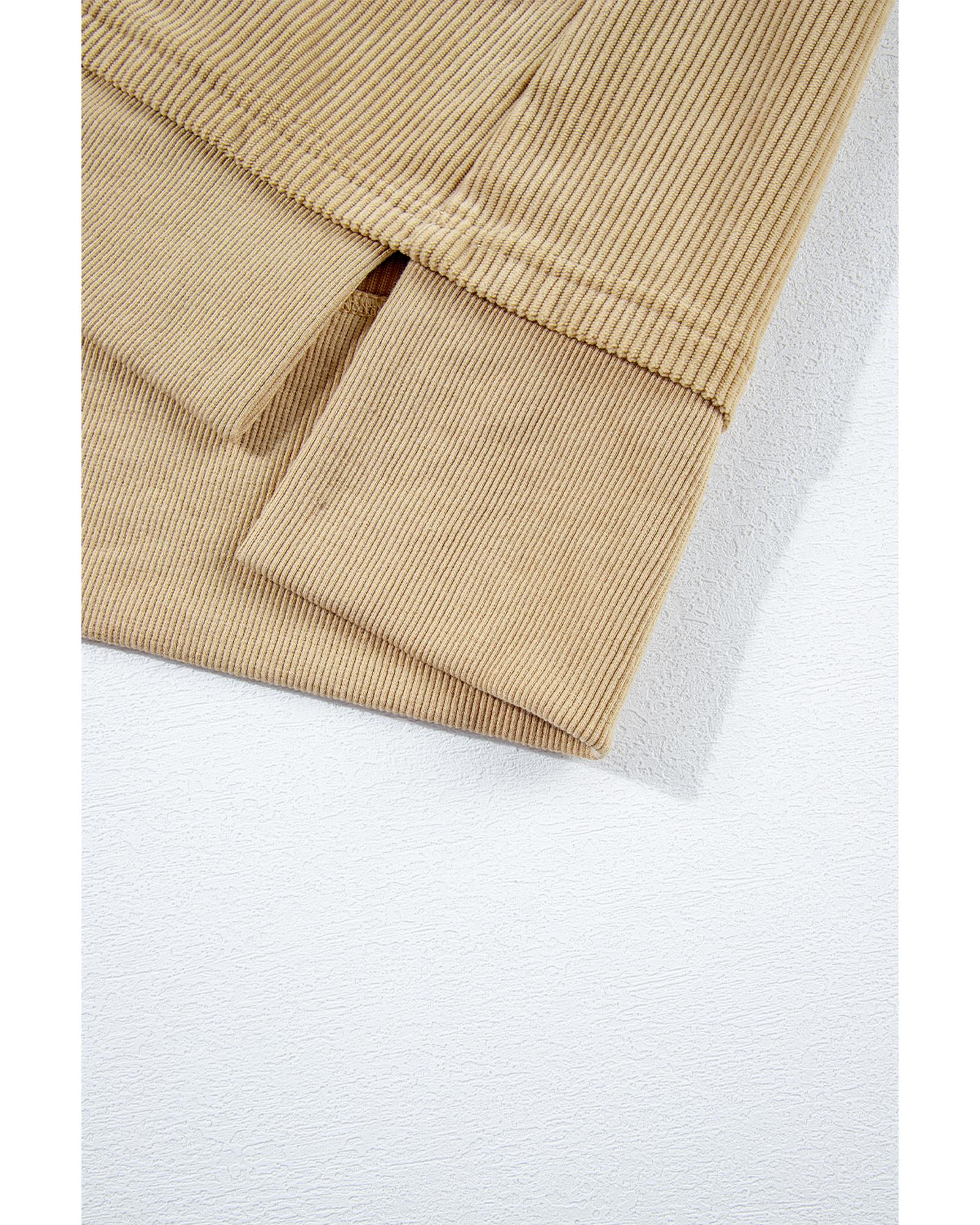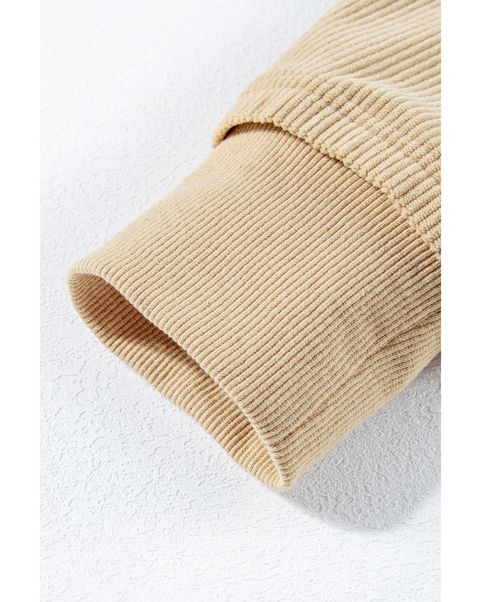 Simply Taupe Solid Ribbed Knit Buttoned Drop Shoulder Oversized Hoodie – L