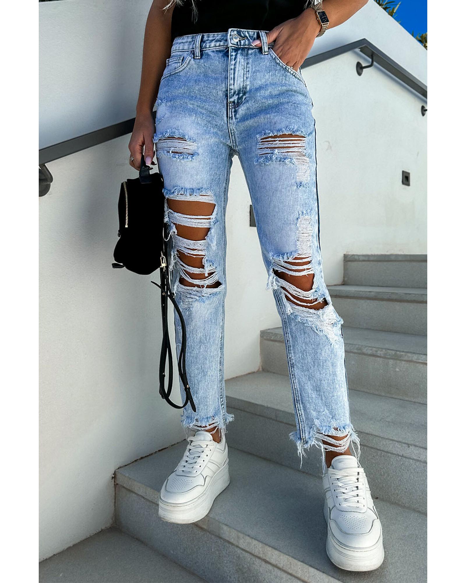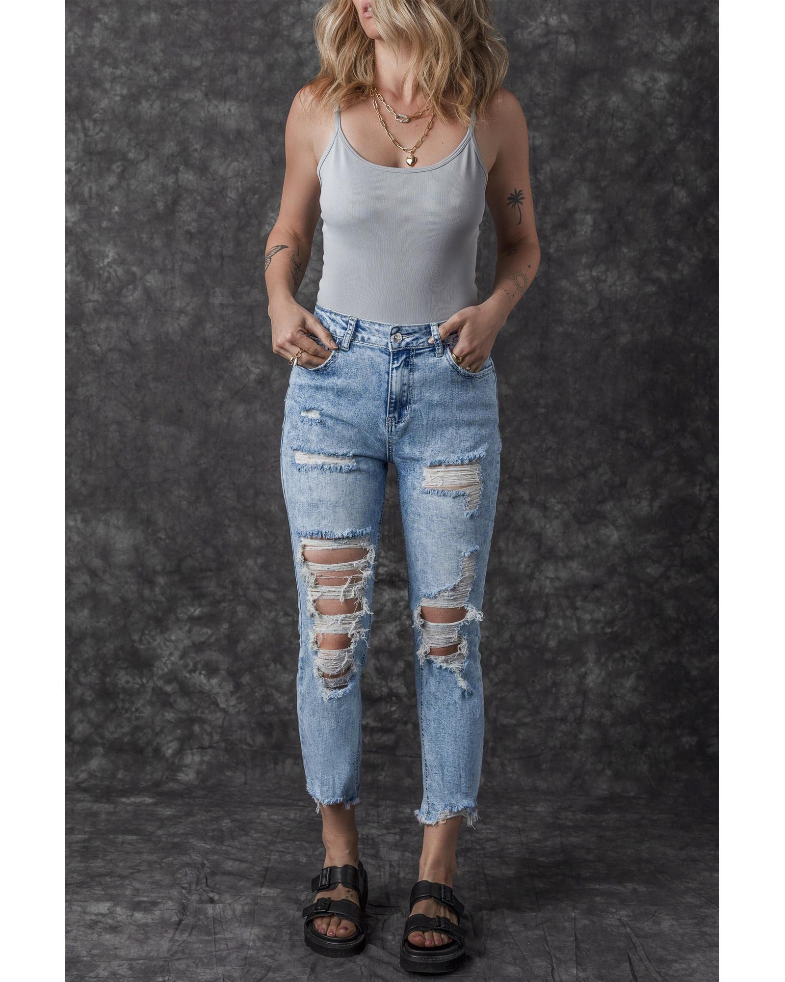 Sky Blue Acid Wash Distressed Slim Fit Jeans – 14 US