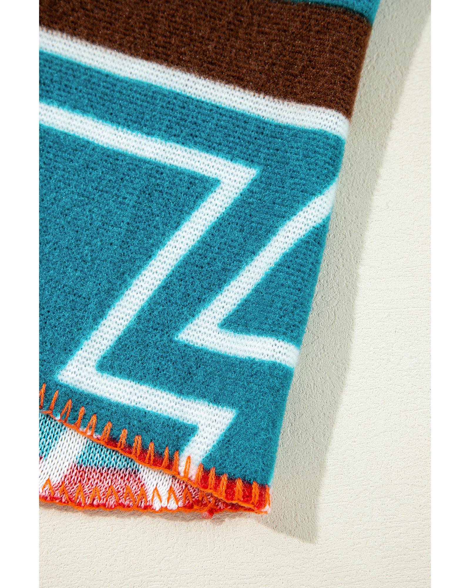- Sky Blue Aztec Printed Lapel Bell Sleeve Jacket