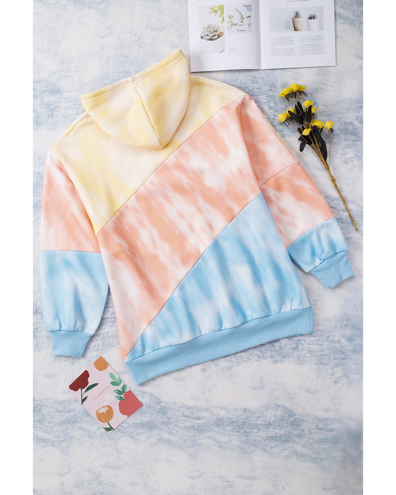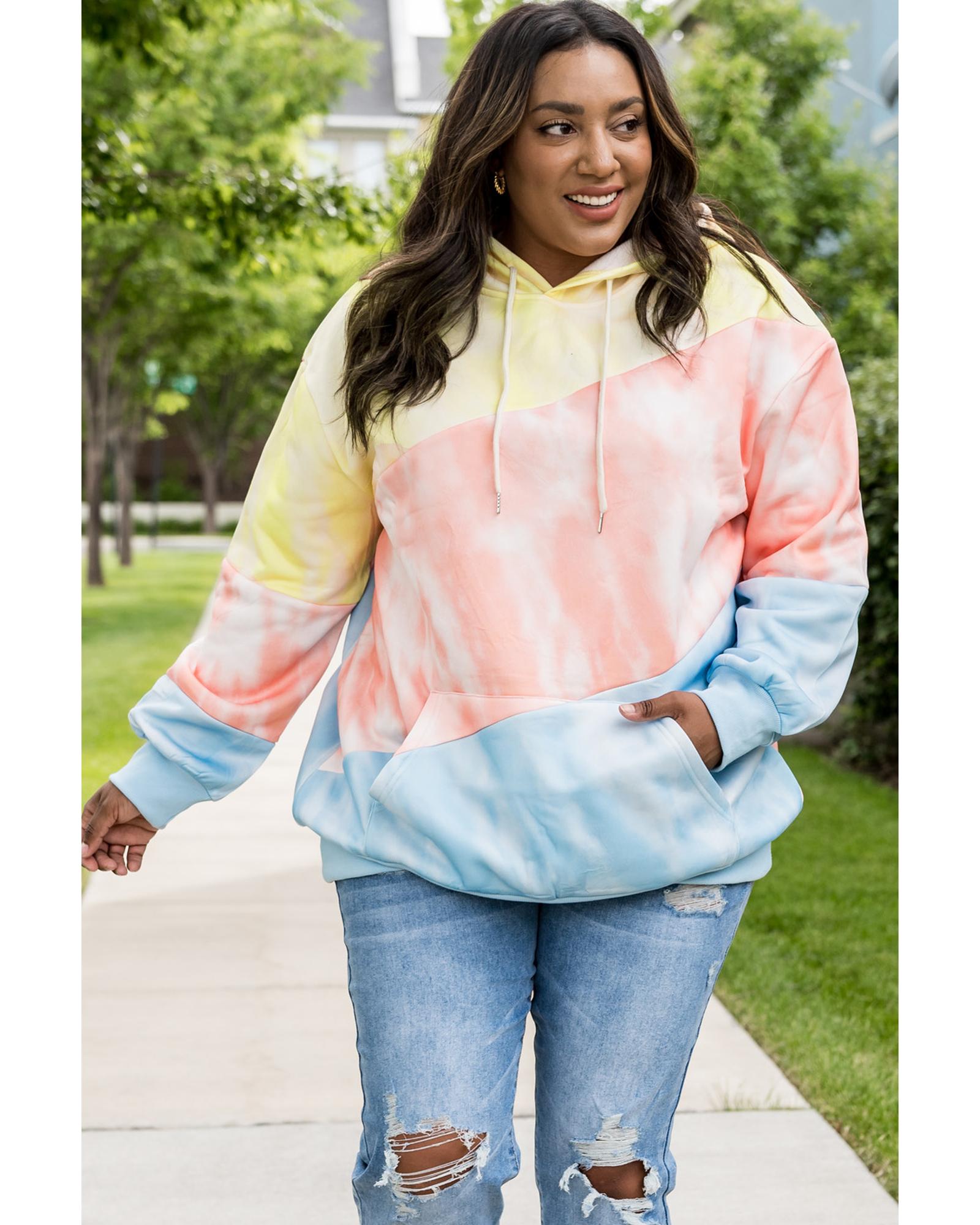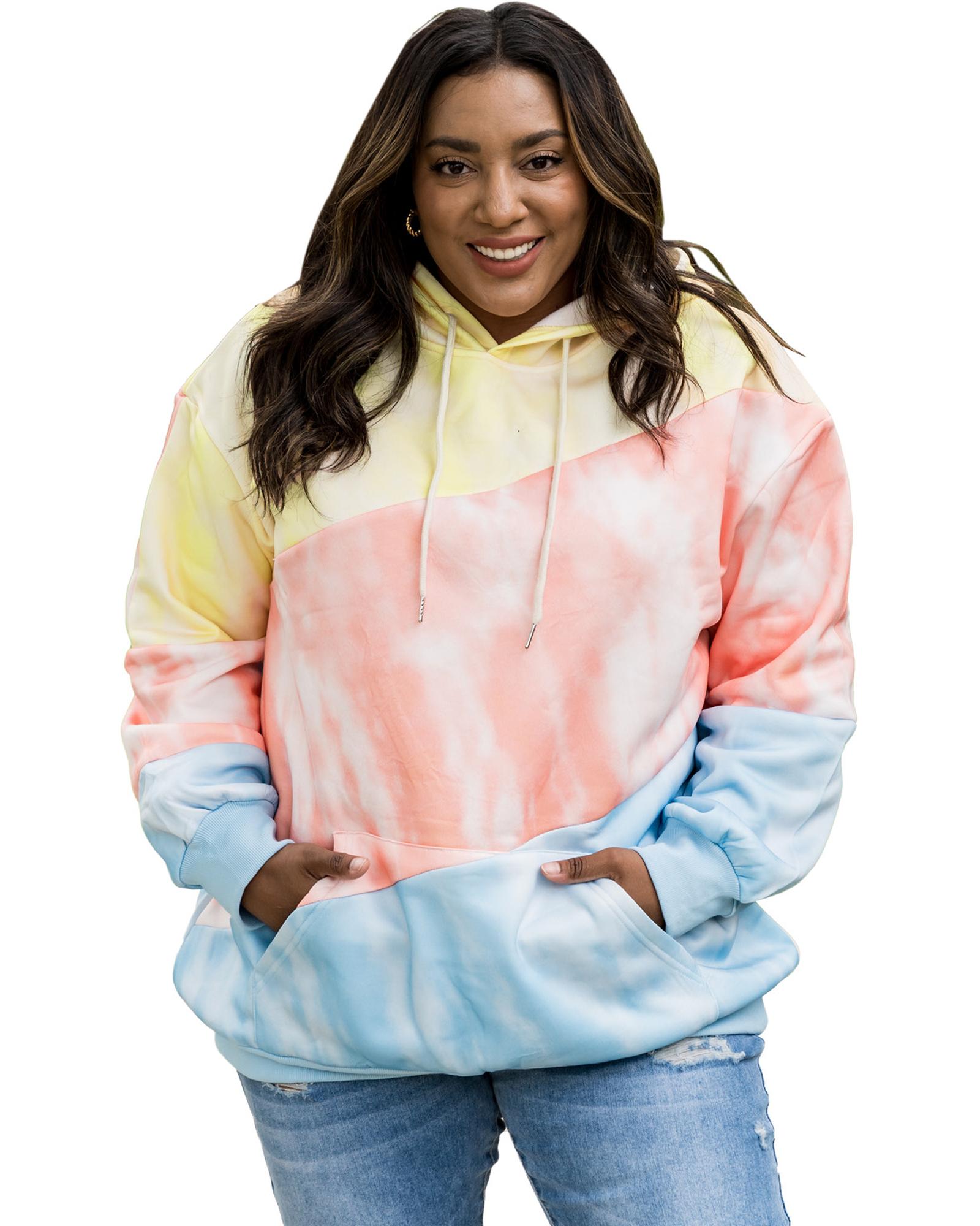 - Plus size hoodie with a colorblock design in sky blue