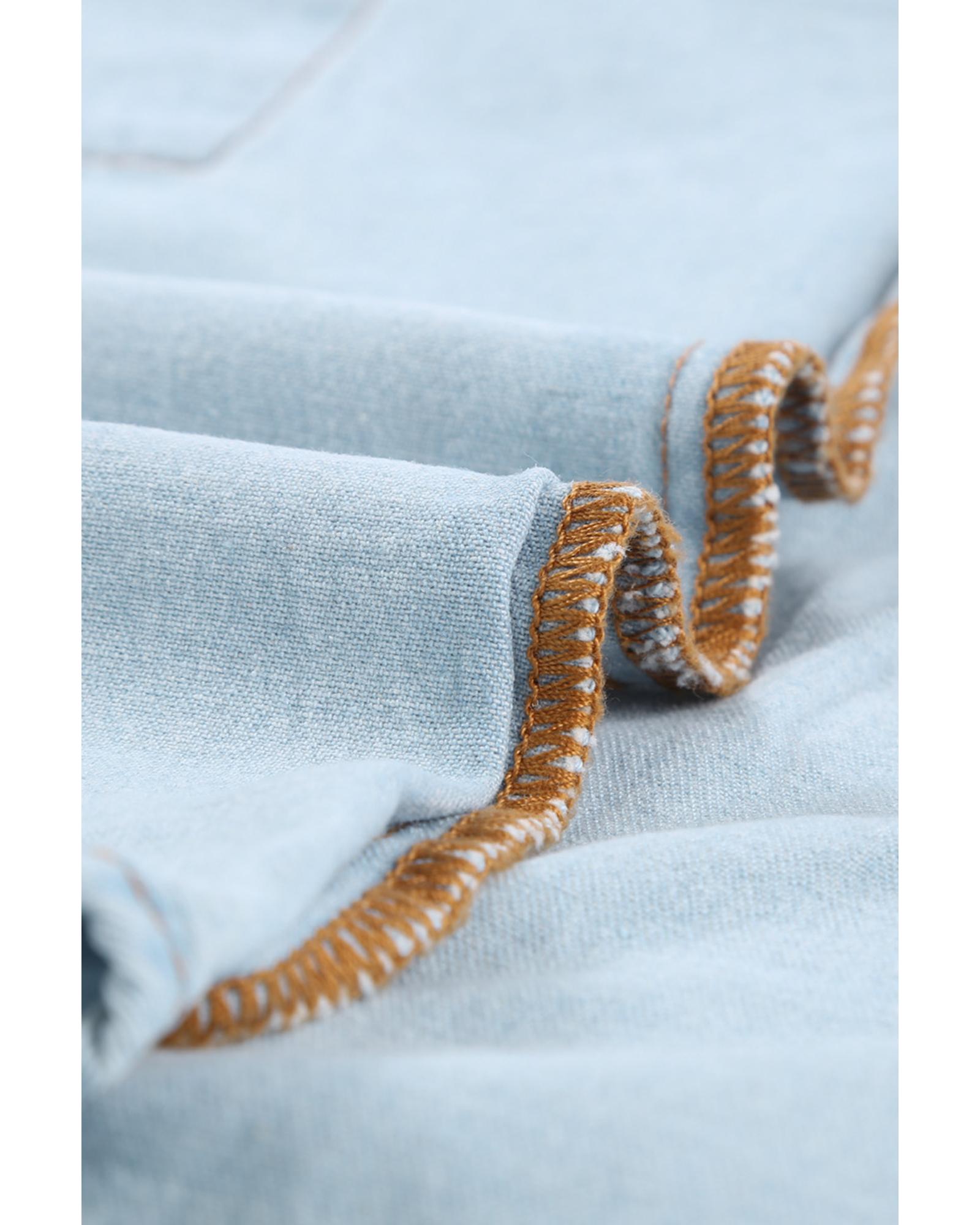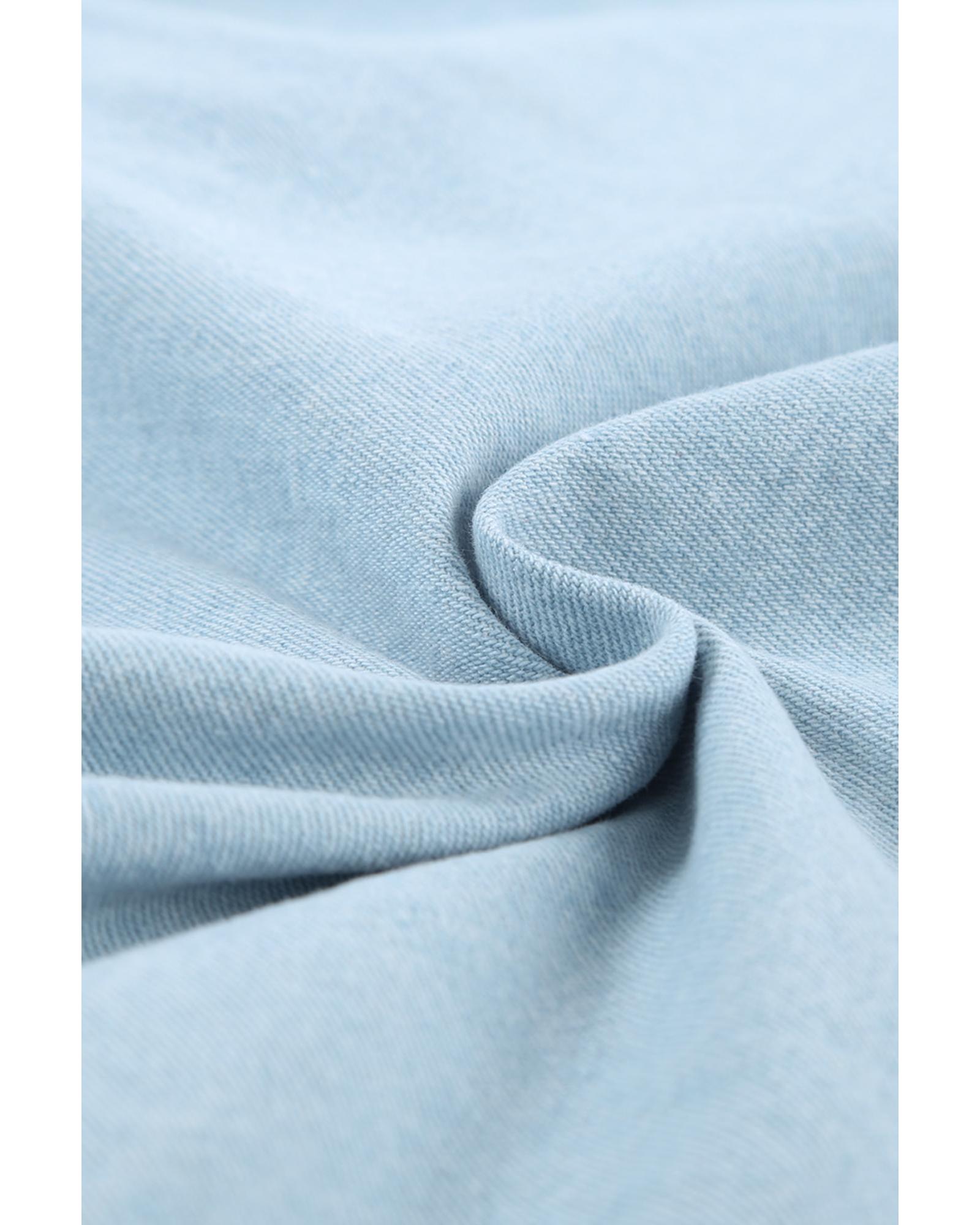 Sky Blue Contrast Leopard Denim Jacket – L