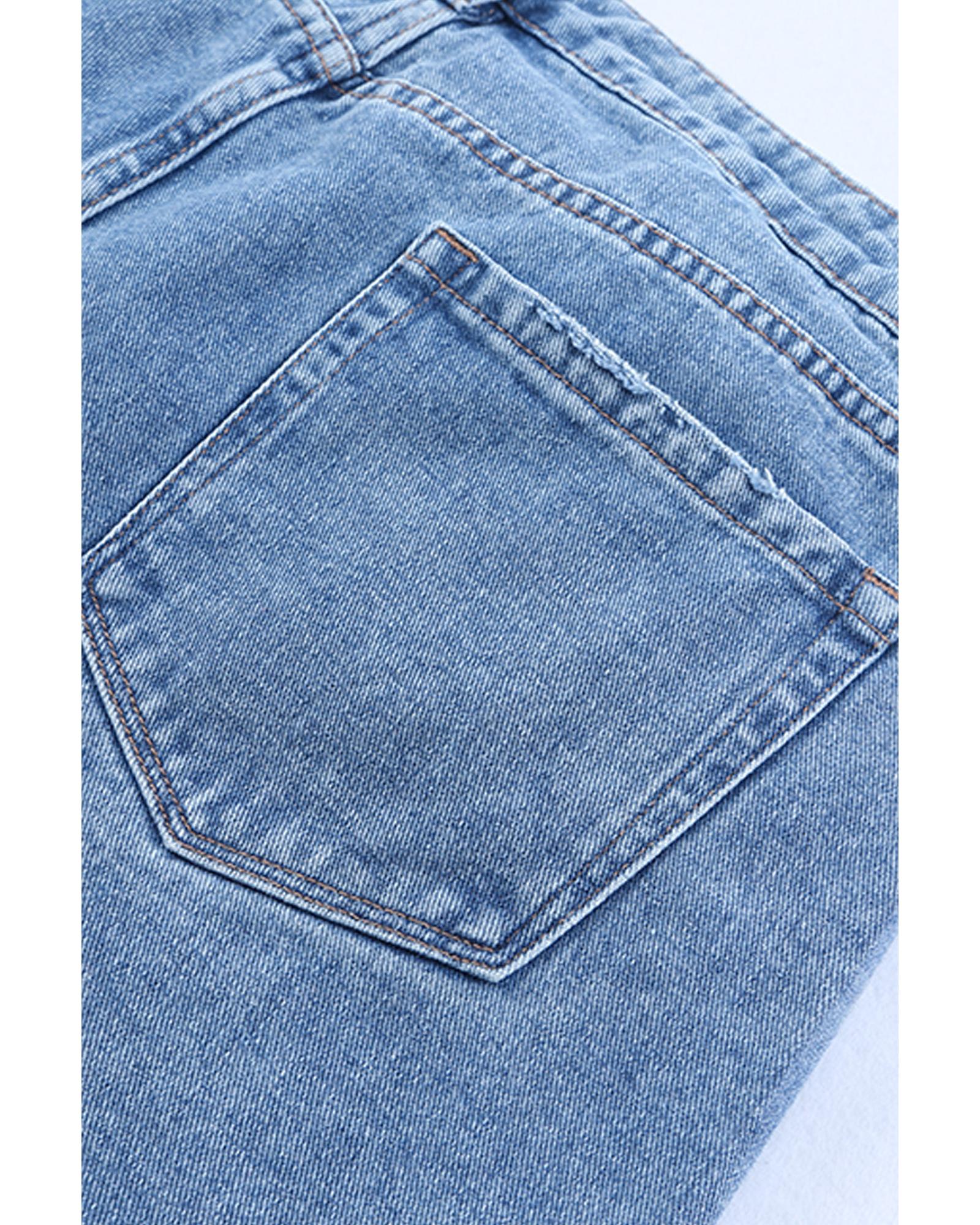 Sky Blue Halloween Skull Patchwork Distressed Straight Jeans - 8 US