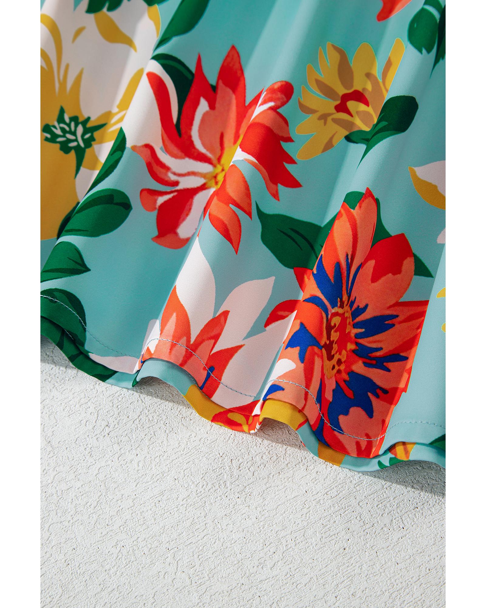 - Sky blue blouse with floral print