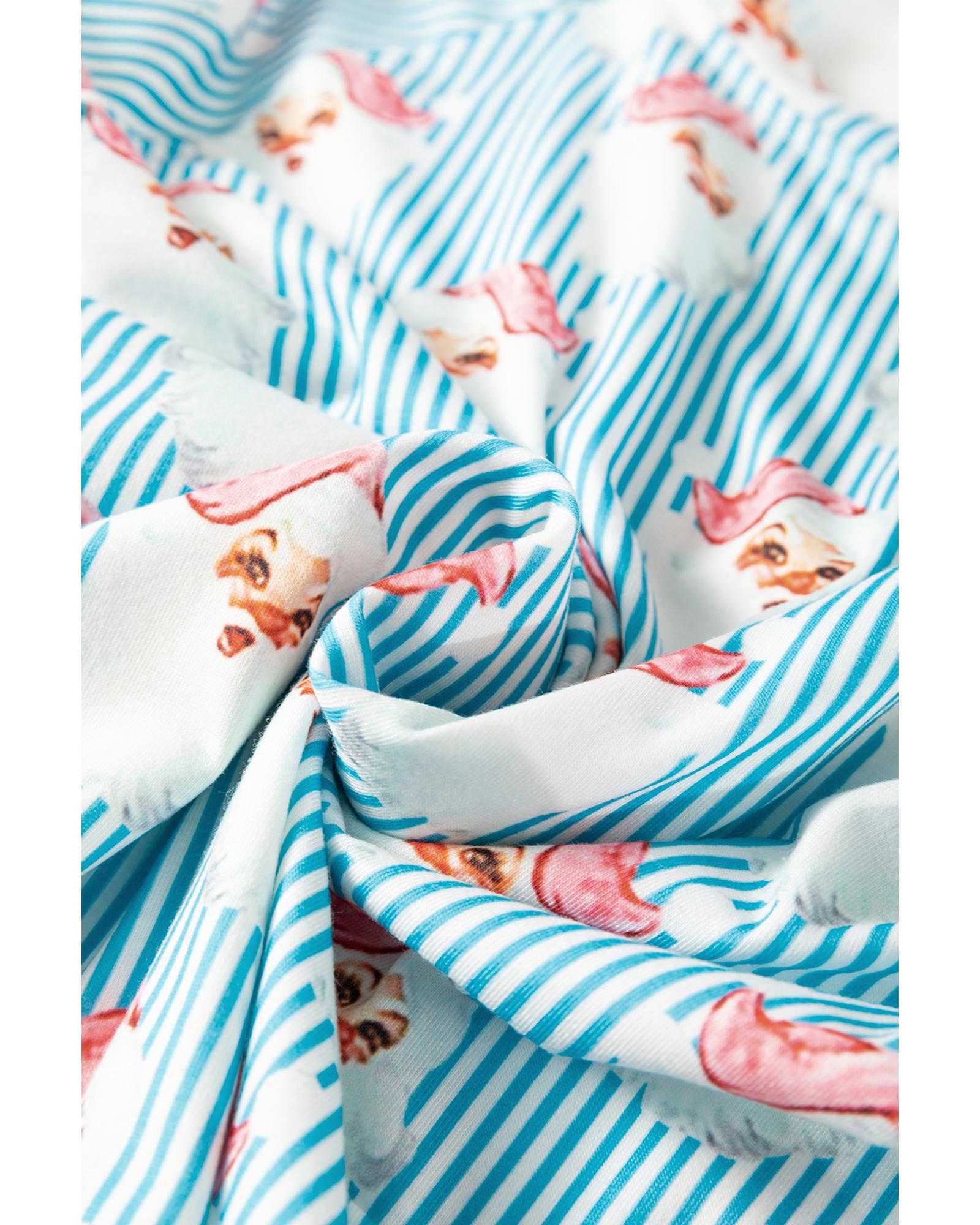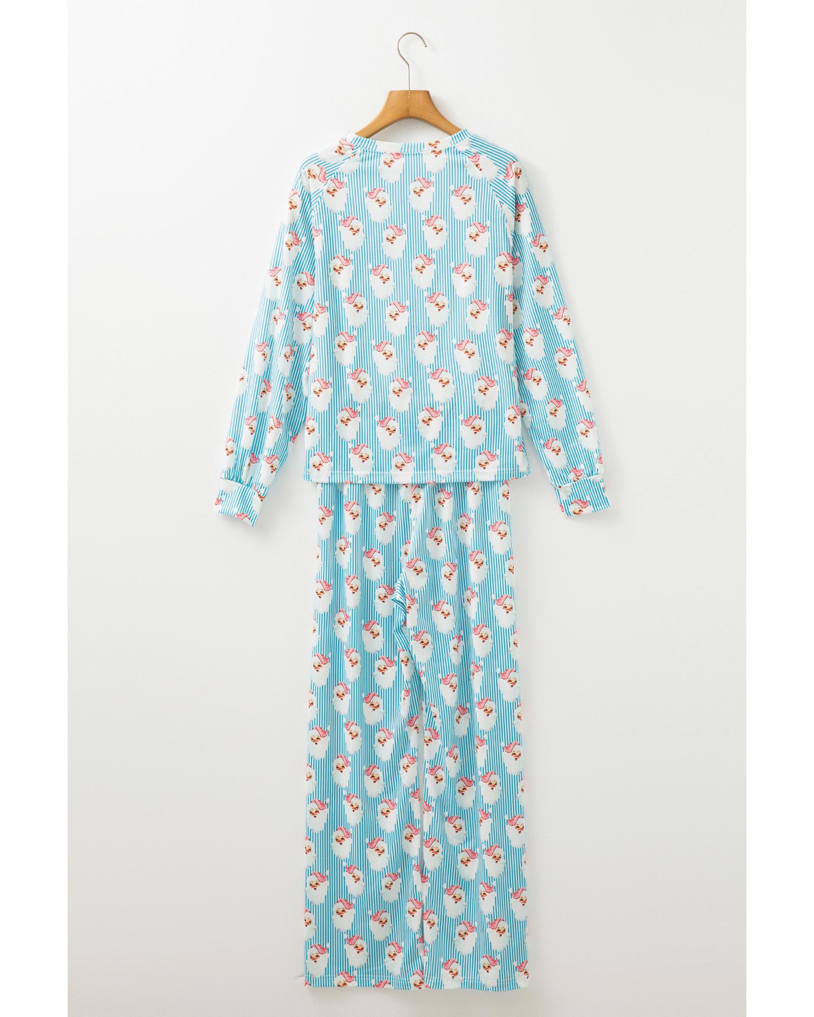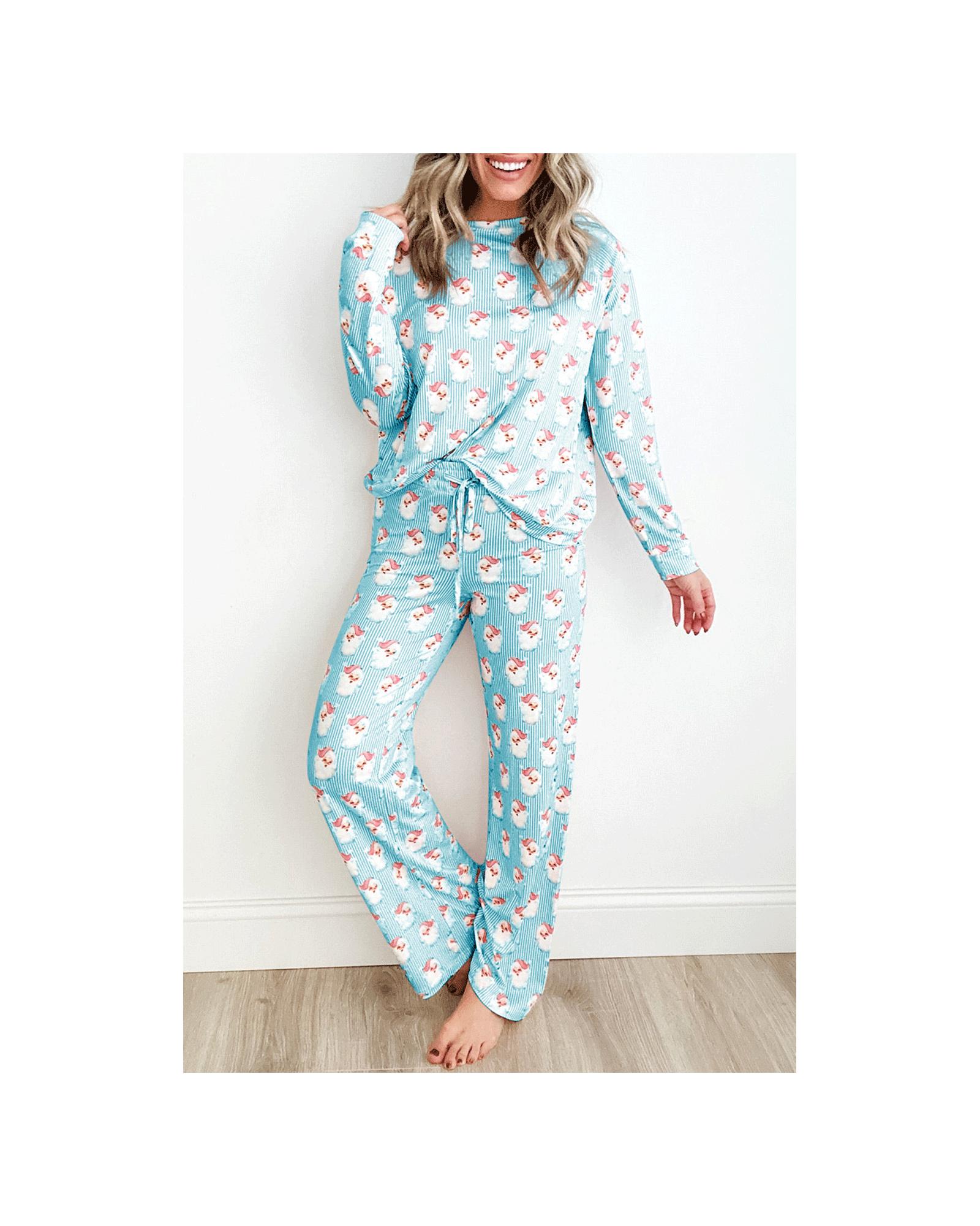 - Sky Blue Santa Claus Striped Print Loose Fit Two Piece Lounge Set