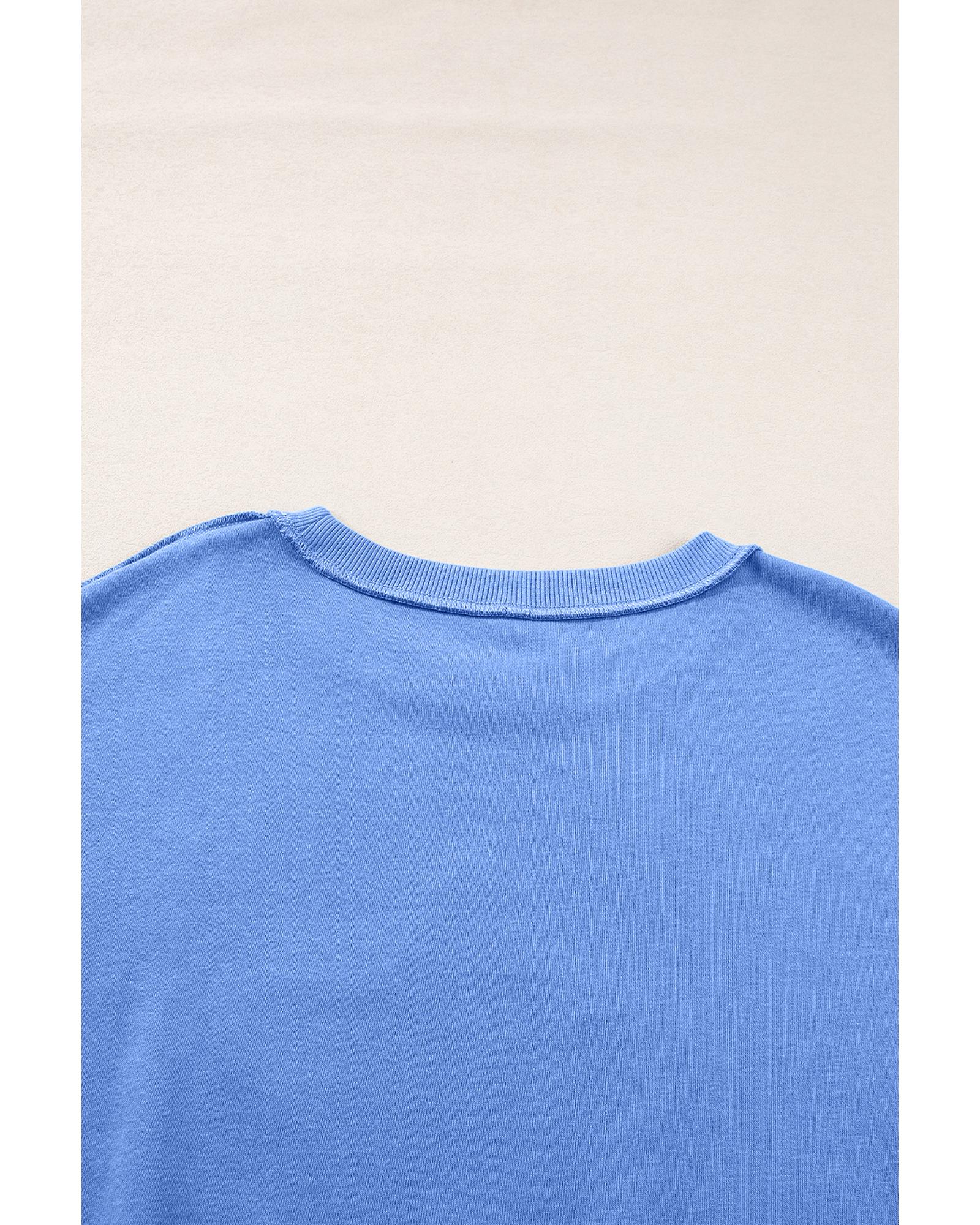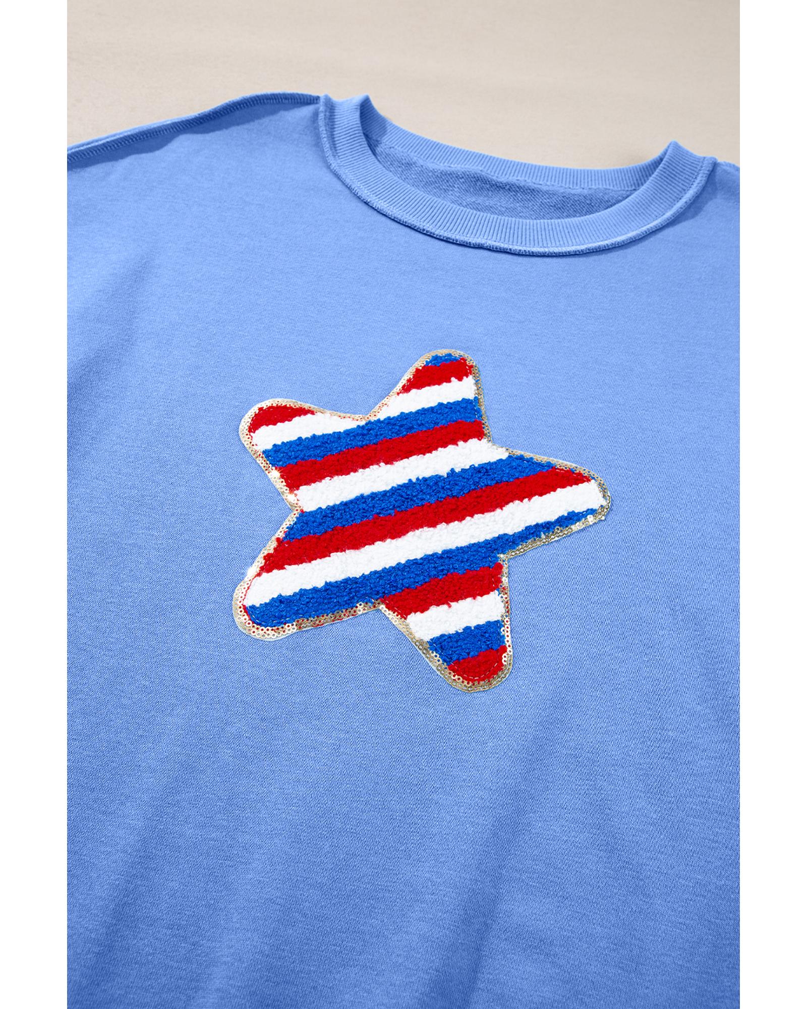- Sky Blue Sequin Trim Embroidered Star USA Pattern Sweatshirt