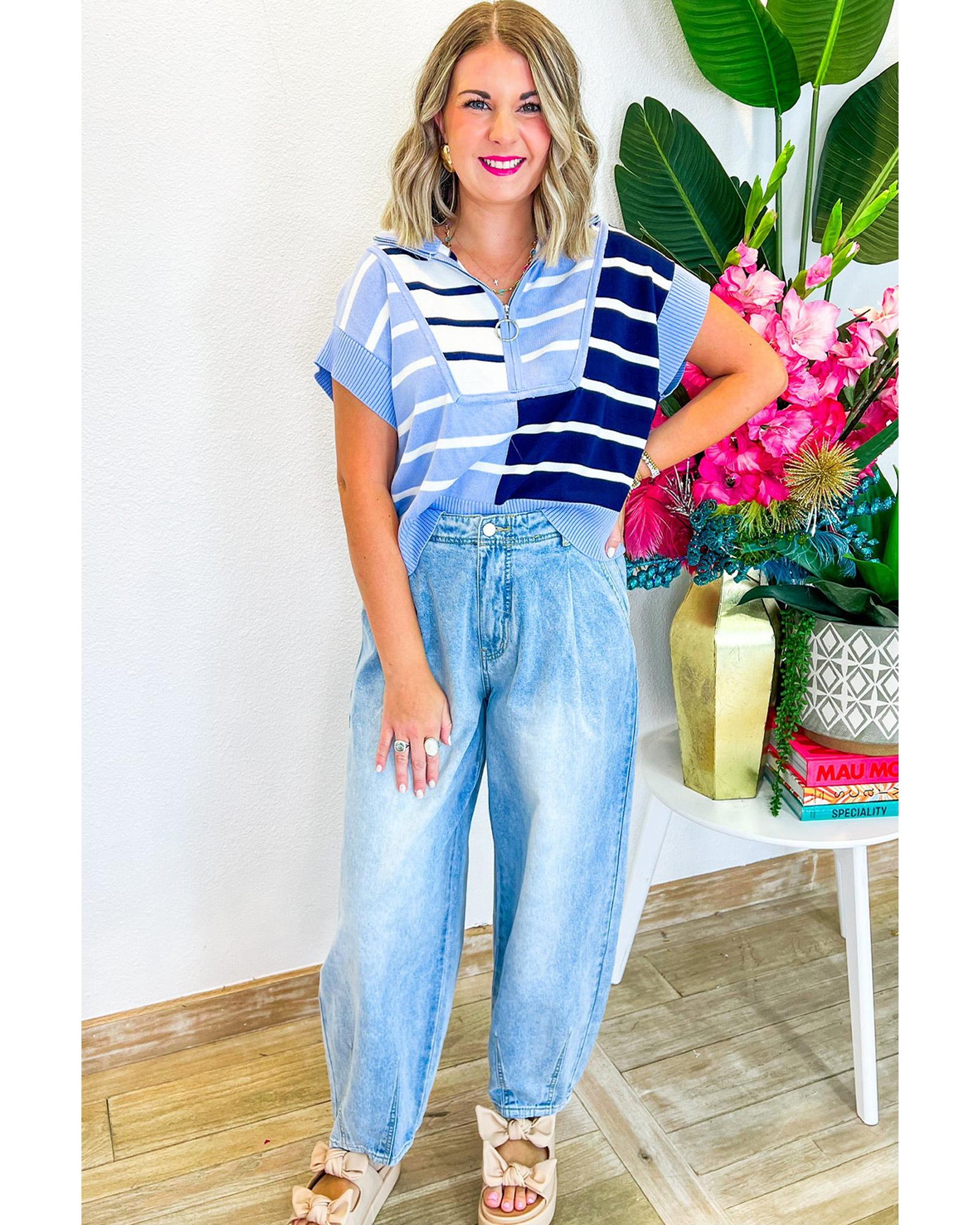 Sky Blue Stripe Colorblock Quarter Zip Collar Sweater Vest – 2XL