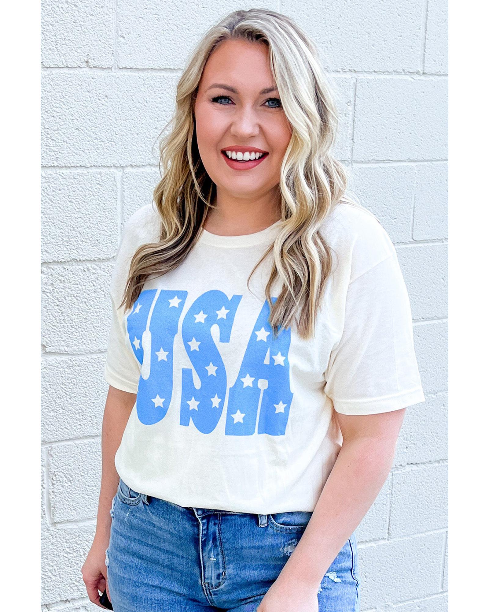 Sky Blue USA Graphic Crewneck Plus Size Patriotic Tee - 2X