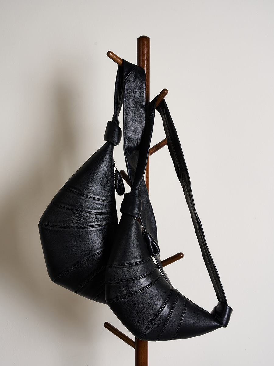 • Unique horn-shaped design inspired by a croissant for a trendy silhouette