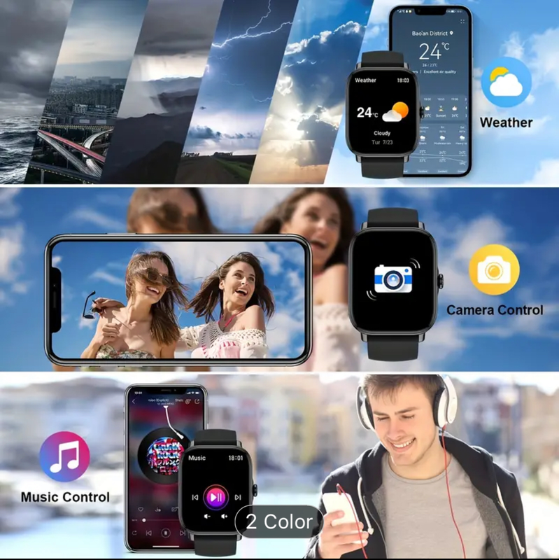 Split screen app, 3D dynamic dial, weather, raise wrist to wake watch, alarm, stopwatch, find my device, calculator, etc.