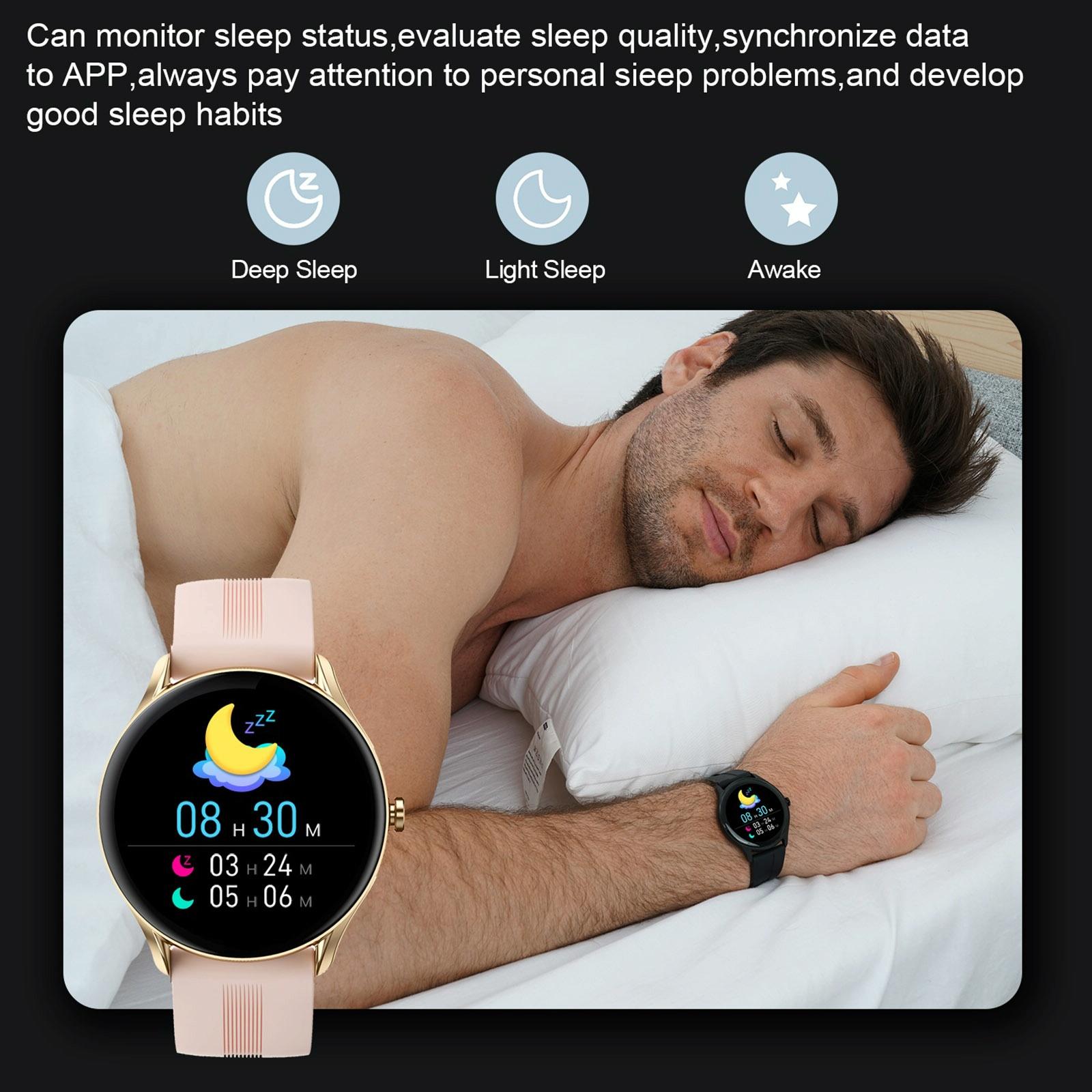 • Multiple functions including step counting, calorie tracking, distance measurement, stopwatch, countdown, heart rate monitoring, blood pressure monitoring, blood oxygen monitoring, sleep monitoring, and more