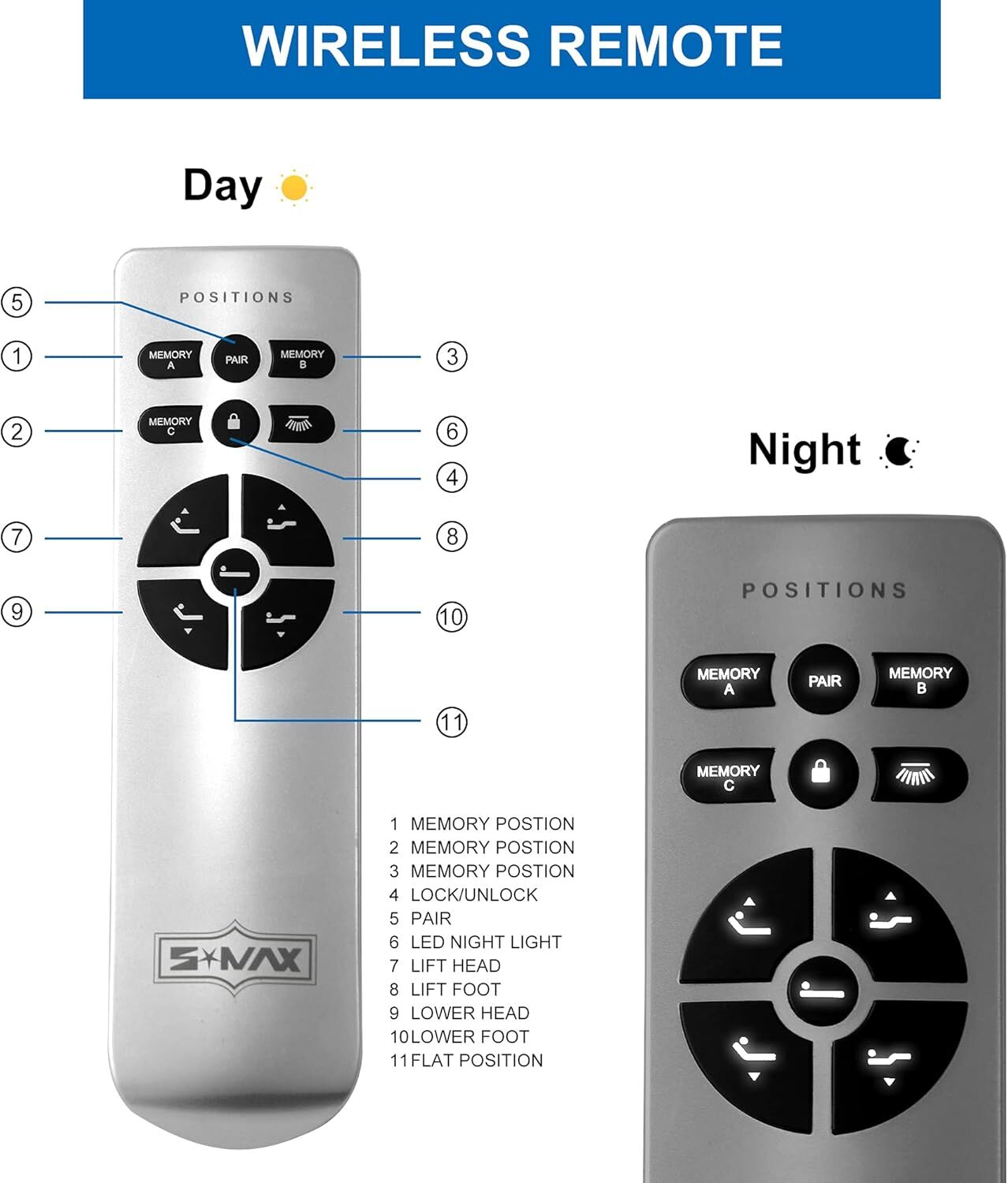 Wireless Remote with Memory Presets – Save your favorite positions for easy one-touch adjustments.
