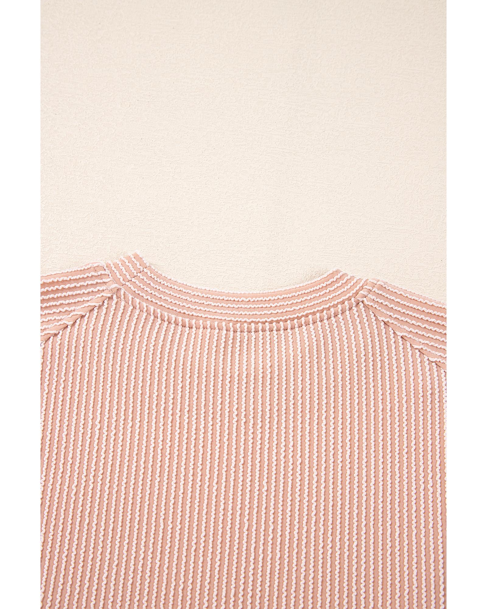Pink Corded Colorblock Patchwork Short Sleeve Top and Loose Pants Set - L