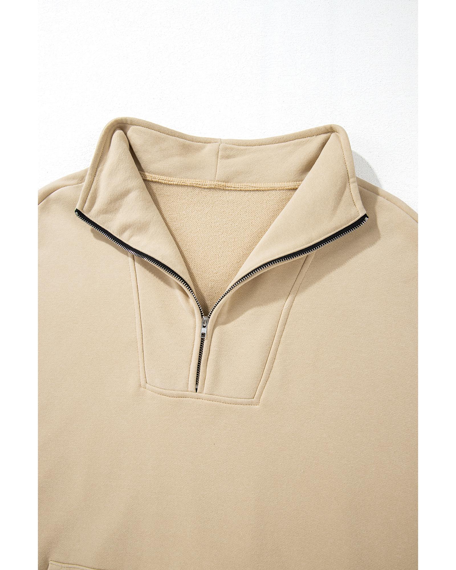 Smoke Gray Zip-up Stand Neck Kangaroo Pocket Sweatshirt – L