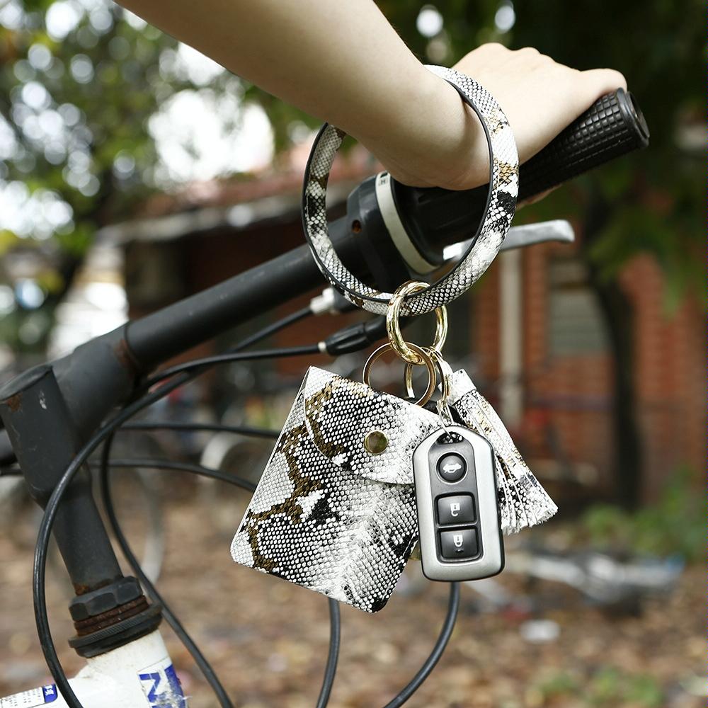 Snake Print Wrist Keychain Coin Purse Black Pu Leather Bracelet Card Case – Black