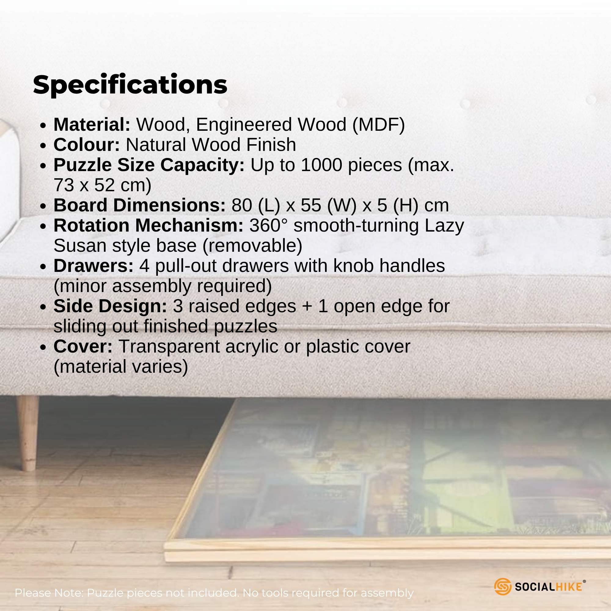Social Hike 1000pcs Puzzle Board 4 Drawer with Cover – Wooden Rotating Tabletop