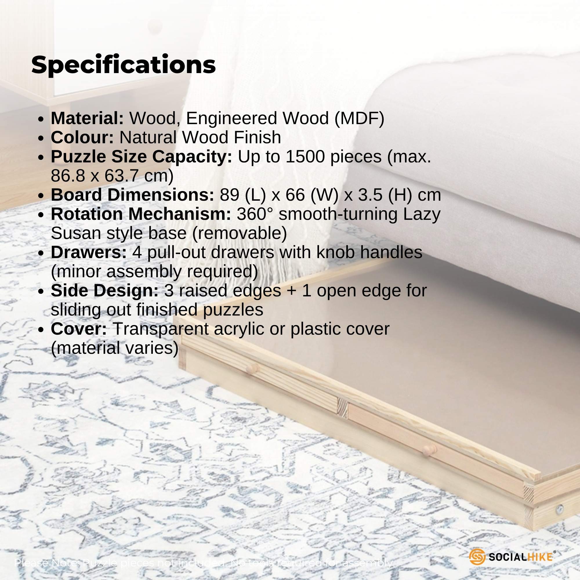 Social Hike 1500pcs Puzzle Board 4 Drawer with Cover – Wooden Rotating Tabletop