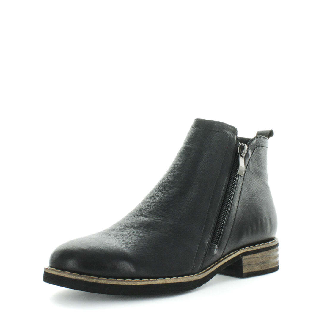 Take on the world in BUTINA! These twin zip ankle boots feature a leather upper and a durable sole, making them perfect for any adventure. With a sleek and stylish leather-like stacked heel, these boots will elevate any outfit. Plus, at 35mm high, they provide the perfect heel height for all-day comfort. Conquer the day with BUTINA!