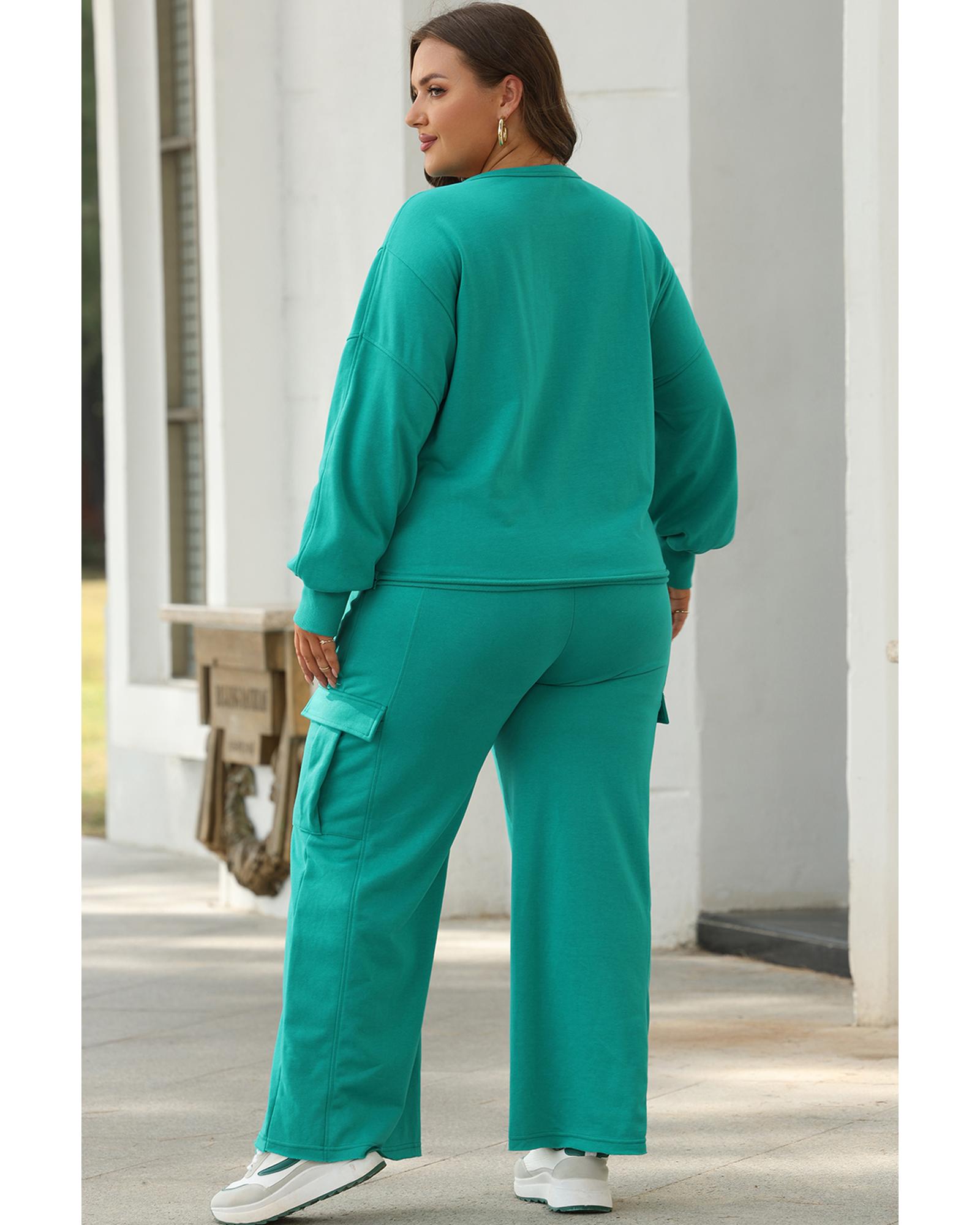 Solid Color Pullover Top and Cargo Pants Set – M