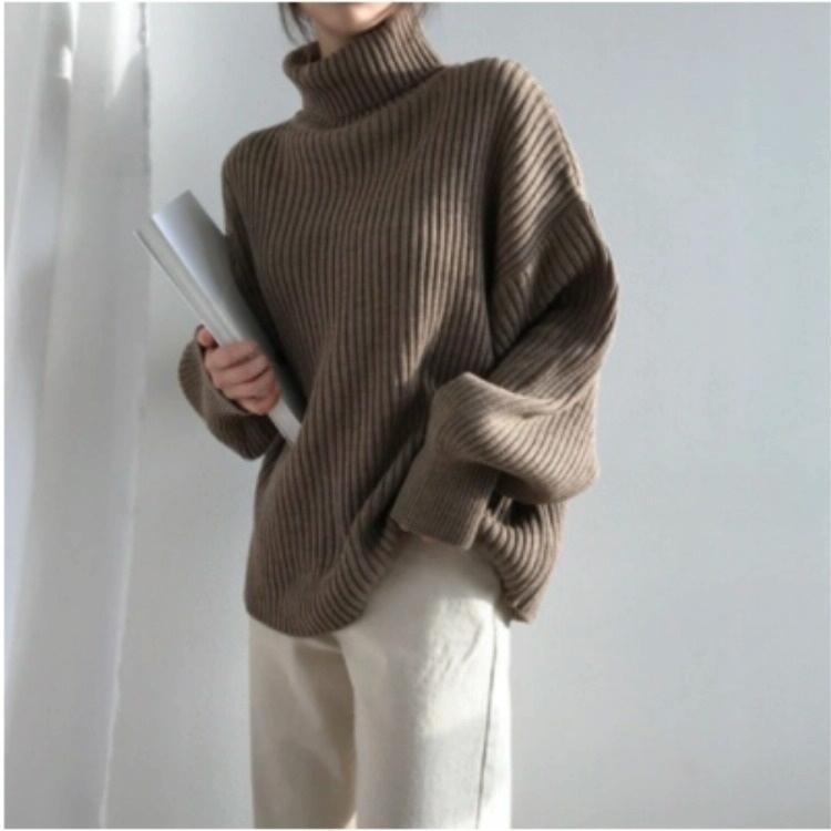 Solid Colour Turtleneck Outer Wear Pullover Casual Sweater Beige – Free Size – Beige Free Size