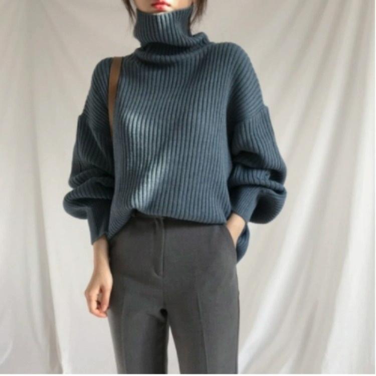 • 1 x Solid Colour Turtleneck Outer Wear Pullover Casual Sweater Beige – Free Size