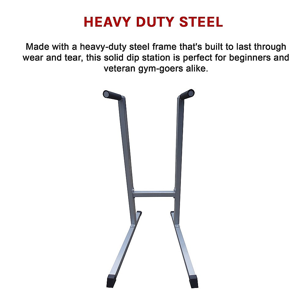 The Randy Travis Solid Dip Station will give you the upper body workout that delivers – it builds your shoulder strength, thickens your deltoids and develops your triceps. This sturdy device gets its balance from the wide, extended base that ensures stability. The 2 x 3 heavy-gauge steel uprights are suitable for users of all size. Your safety and comfort is ensured by the oversize 1 bars that feature extra-thick, slip-proof rubber grips in any position required by your exercises. This amazing piece of equipment can be used at the home or at the gym.